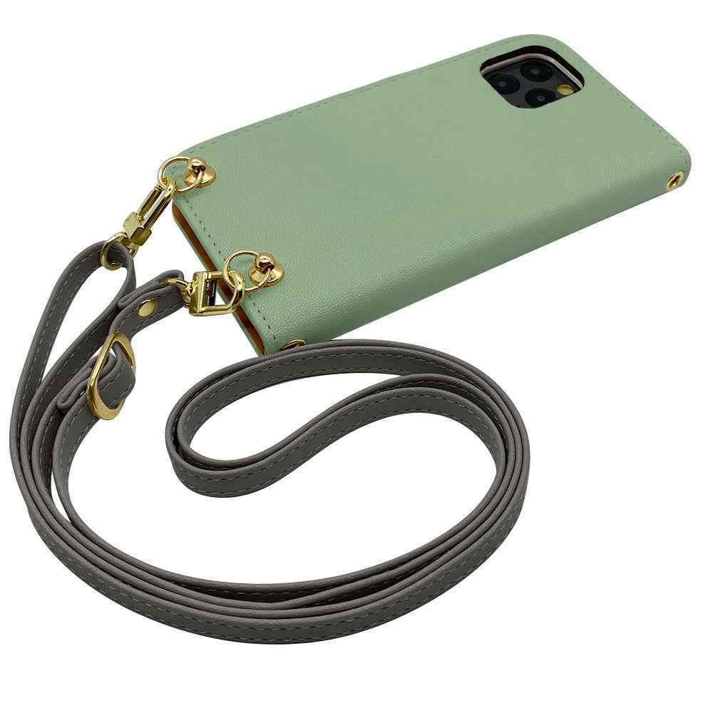 OPPO A54 5G スマホショルダー(手帳アッシュグリーン×ストラップ:アッシュグレー)カバー 手帳 くすみカラー