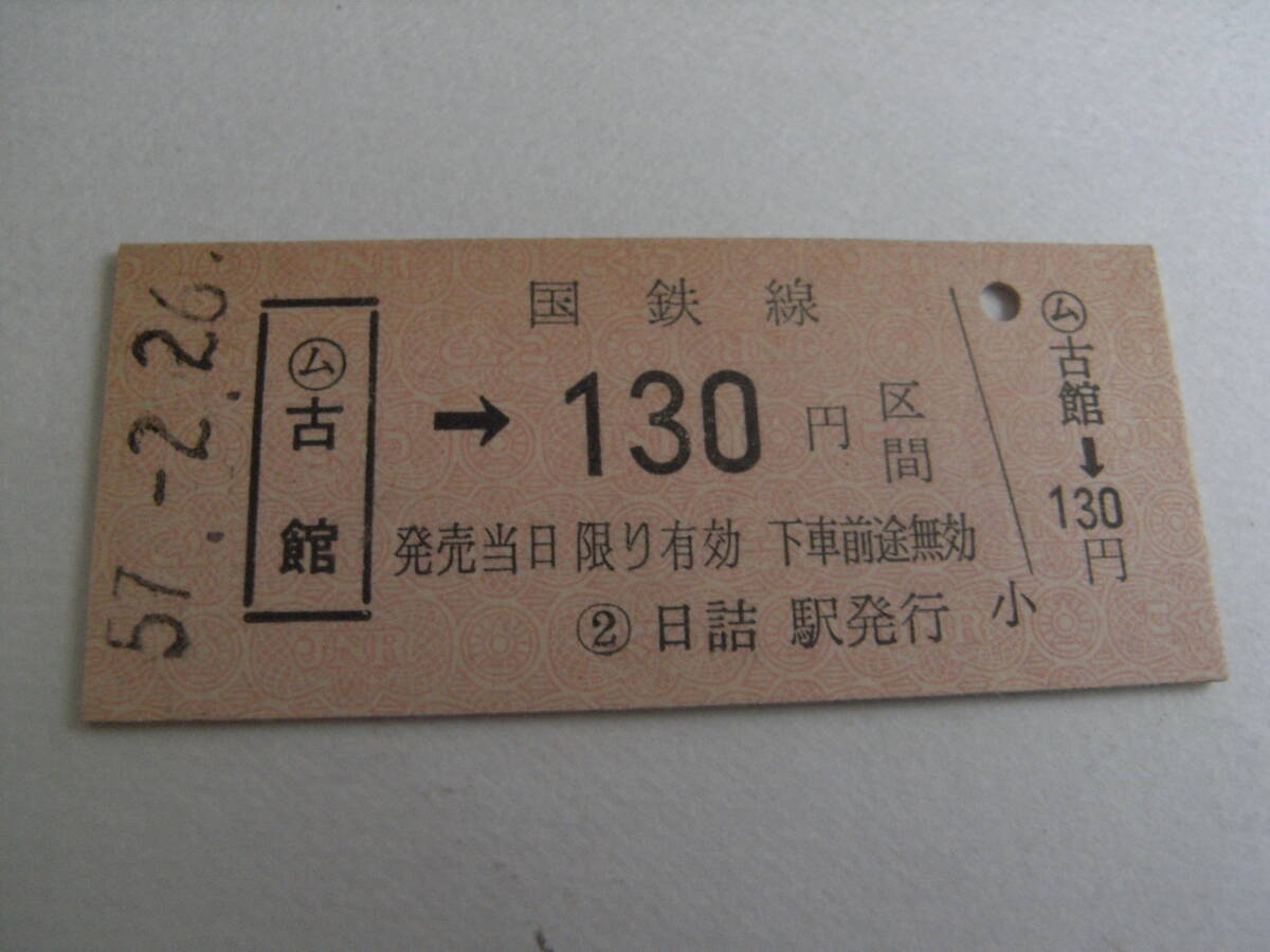 東北本線 ム古館→国鉄線130円区間 昭和57年2月26日 日詰駅発行 簡易委託