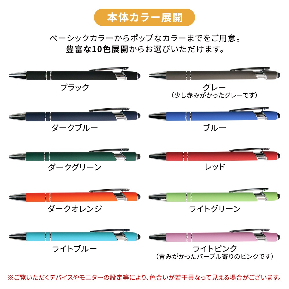 【10本セット】タッチペン付きボールペン ( 同色に限ります ) ※ご落札後、ご要望欄にて 本体色をお知らせください ノベルティや販促用にオススメなタッチペン付きのボールペン。 程よくマットな質感で安っぽくならず、 ビジネスシーンにもマッチします。 シンプルなデザインなので男女ともに喜んで頂けます。 [ 本体カラー ] ・ブラック ・グレー(少し赤みがかったグレーです) ・ダークブルー ・ブルー ・ダークグリーン ・レッド ・ダークオレンジ ・ライトグリーン ・ライトブルー ・ライトピンク(青みがかったパープル寄りのピンクです) ・インクカラー:ブラック ベーシックカラーからポップなカラーまで、 豊富な10色展開からお選びいただけます。 [ 商品サイズ ] ・長さ:約143mm ・直径:約10mm ・芯径:1.0mm [ 包装について ] 通常は1本1本を透明の袋に入れての発送となりますが、 ![]() ![]() ![]() ![]() ![]() |