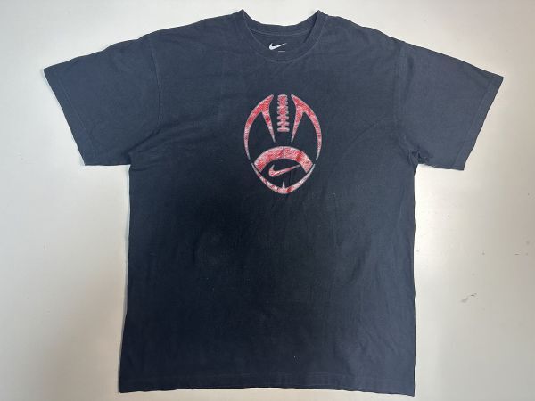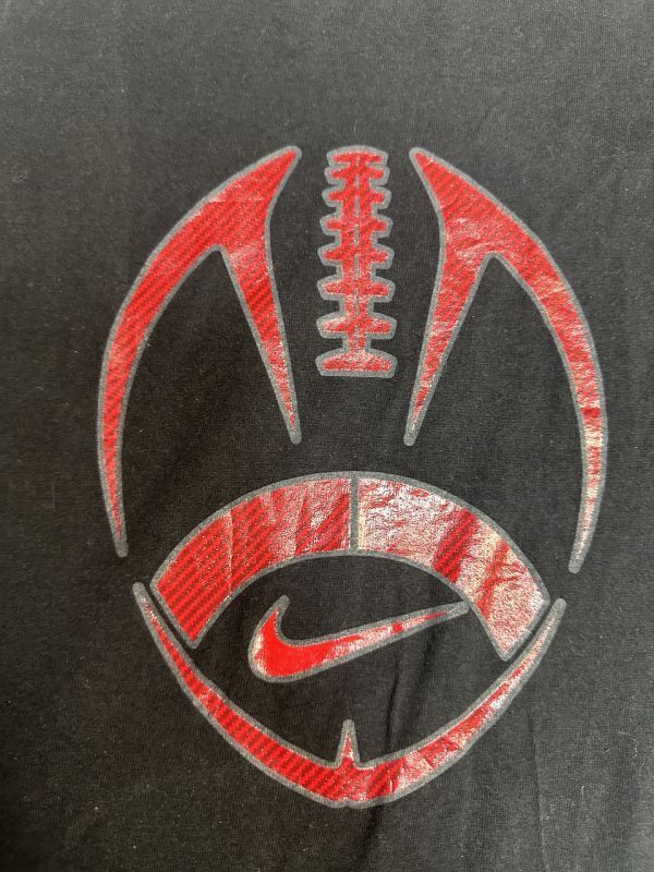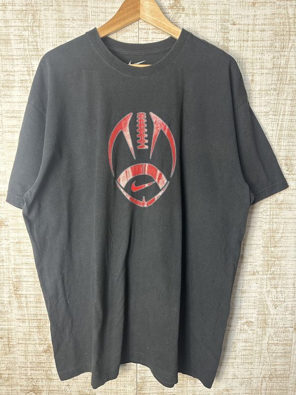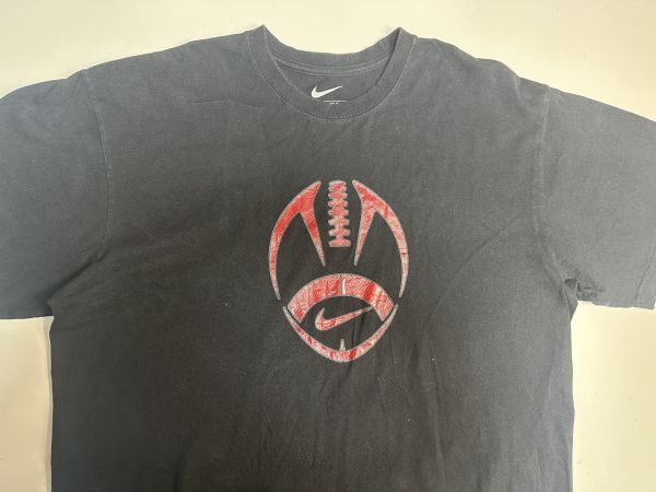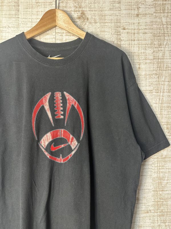 ●US USED ビッグサイズ US古着 NIKE ナイキ Tシャツ ラグビーボール デザイン プリント ブラック黒【XL】コットン