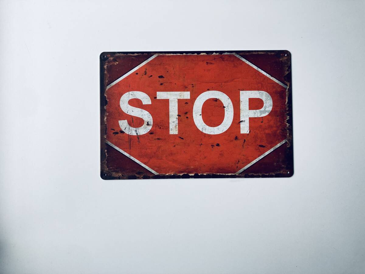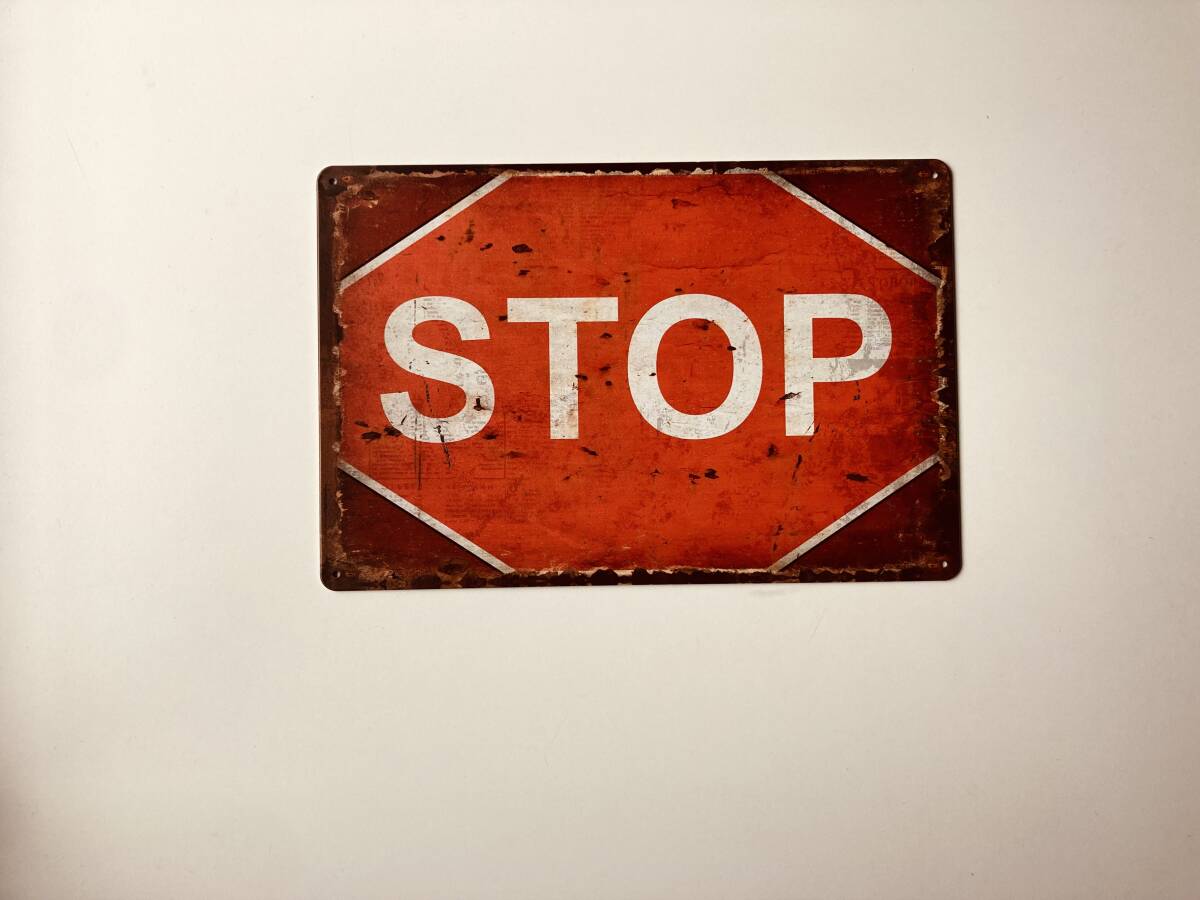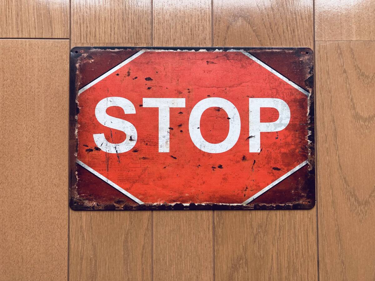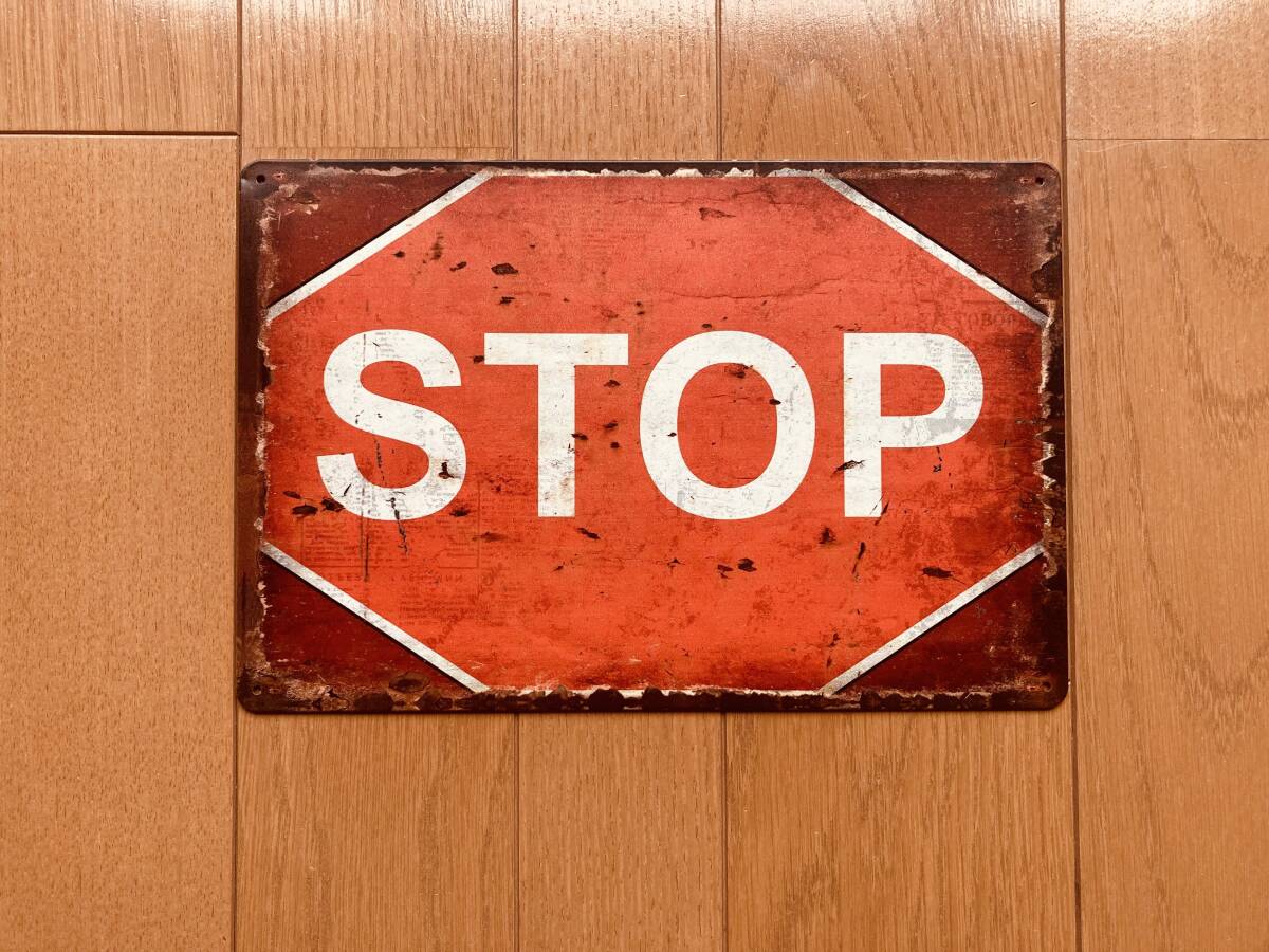 ブリキ看板 20×30㎝ STOP ストップ 立入禁止 止まれ アメリカンガレージ TIN インテリア ヴィンテージ NEW 防水 新品 P-116