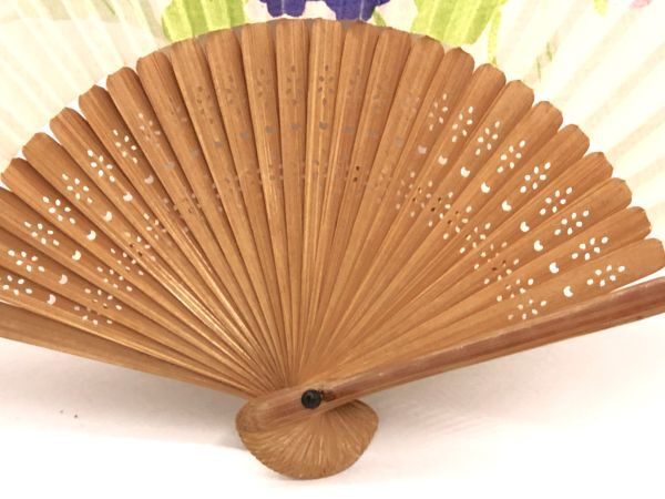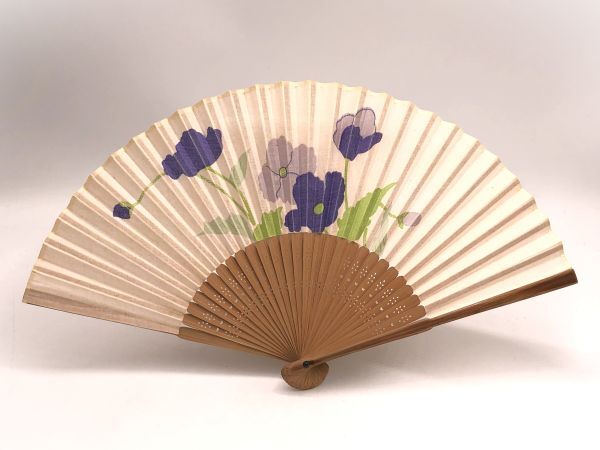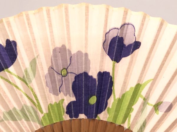 【昭和の扇子】 草花図 煤竹・布   N1017E
