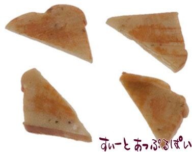 ガーリックブレッドのミニチュア、4ピースセットです!キッチンに置いてもよし、テーブルのお皿の上に置いてもよし、袋に入れてパン屋さんの棚に置いてもよし…貴方のドールハウスライフにぜひお役立てください。もちろん、粘土が得意な貴方は、手作りしてくださいね!サイズ:約9x9mm