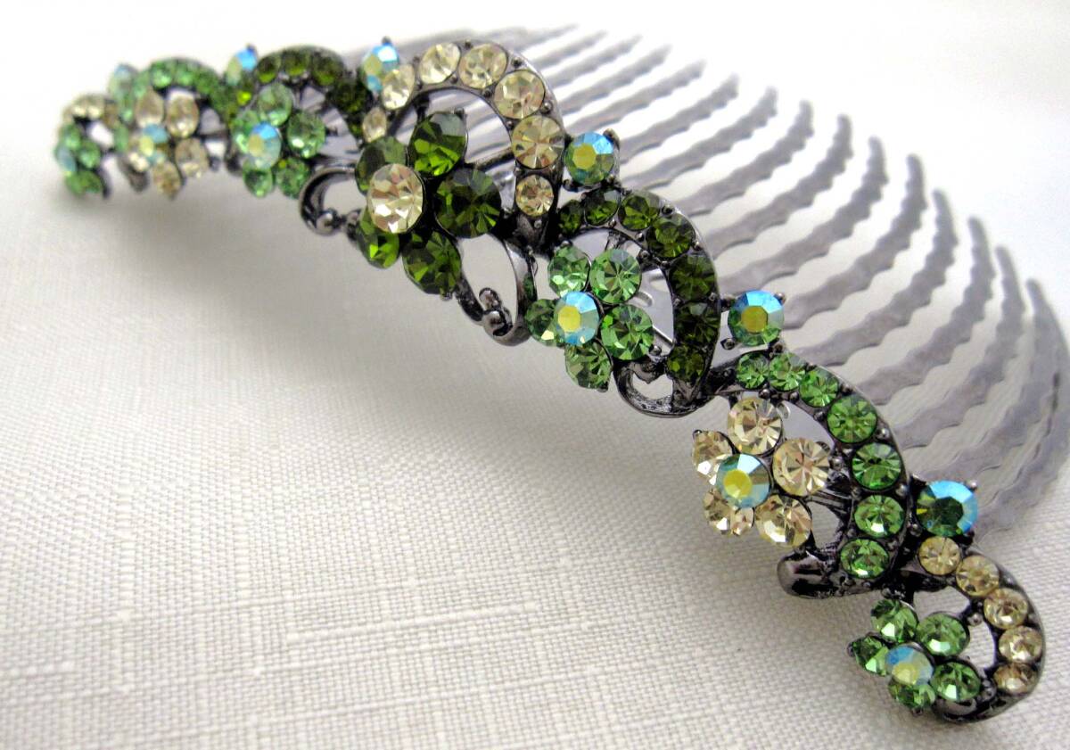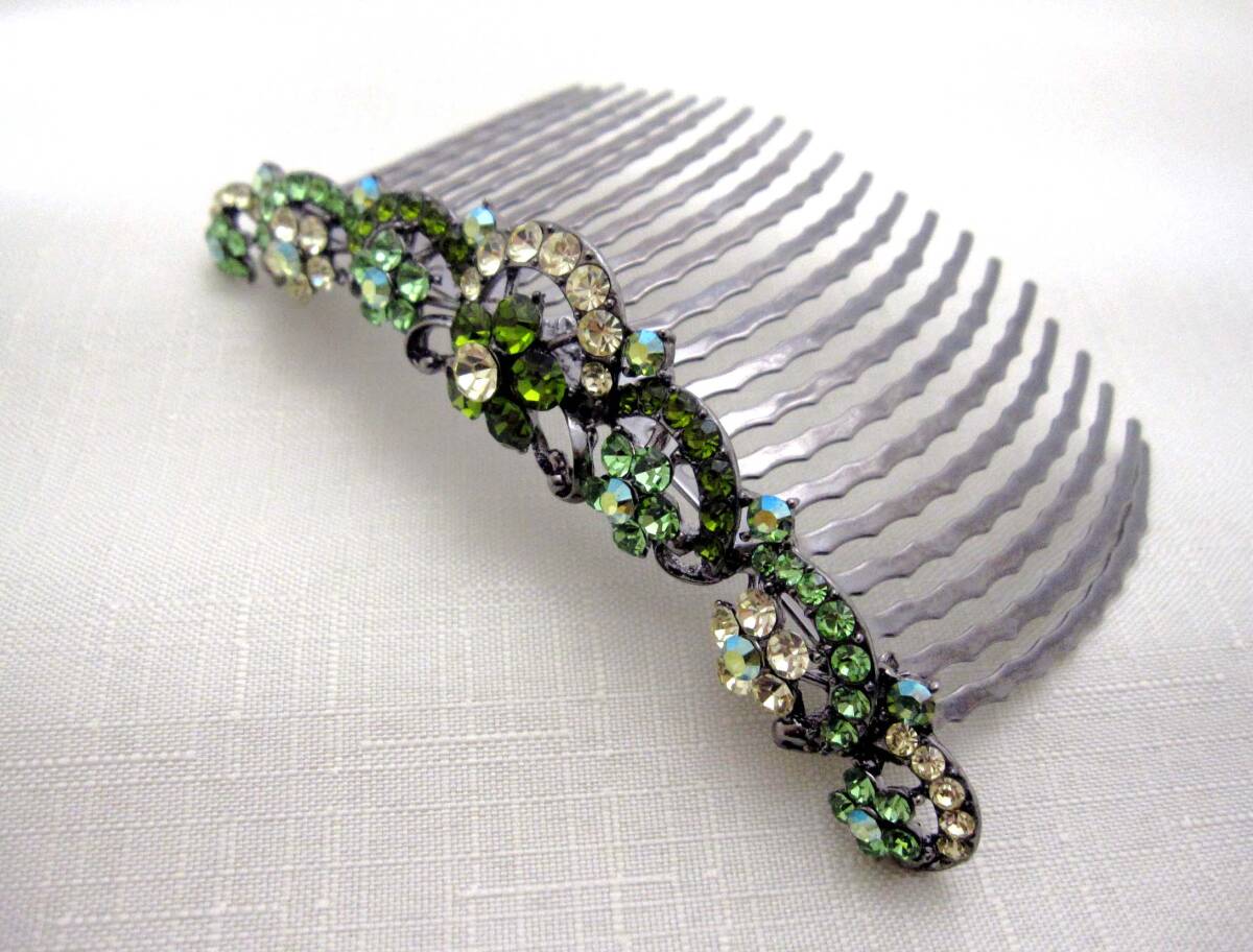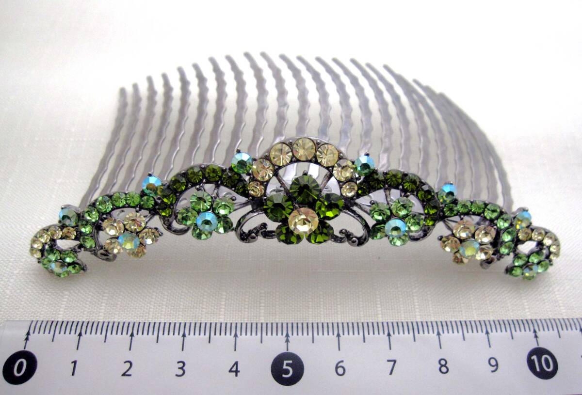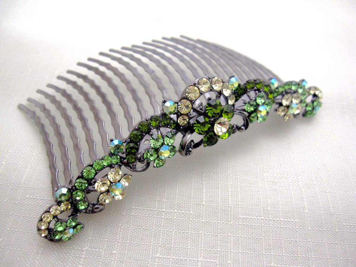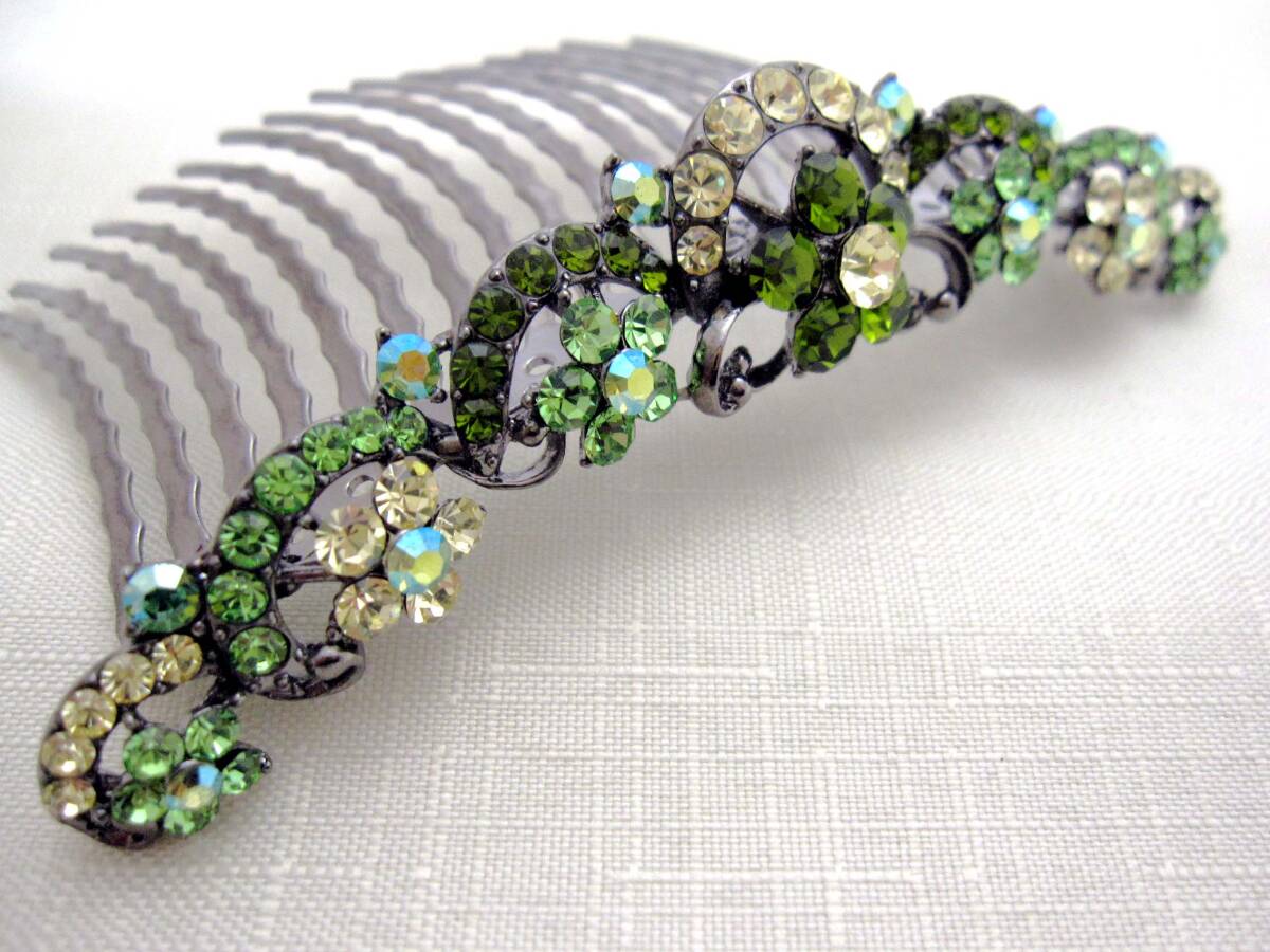 美品 夜会巻きコーム ライトグリーン ヘアアクセサリー*きらきら*髪飾り*和装*女子会*スワロ*ティアラ* 発表会<240218-1>