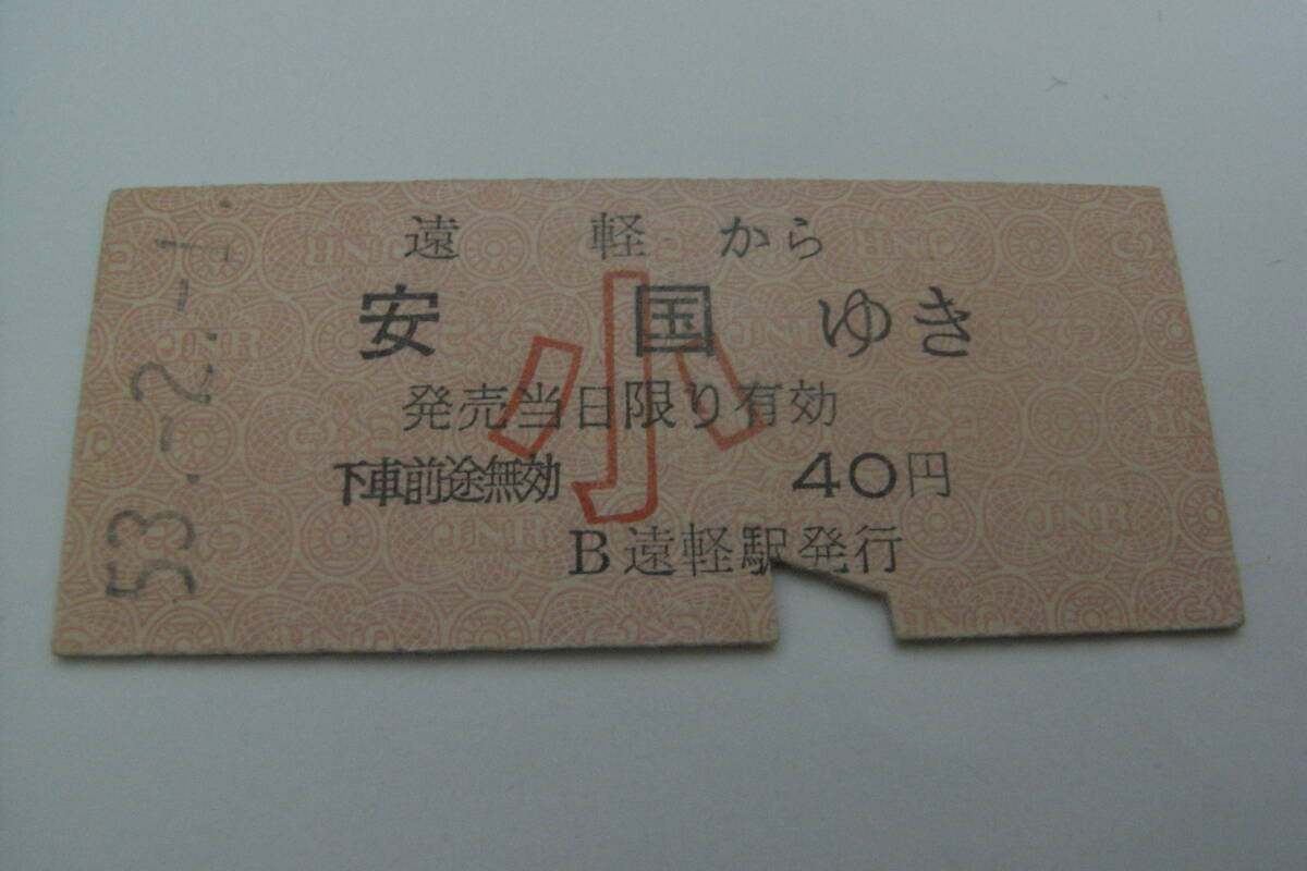 石北本線 遠軽から安国ゆき 小40円 昭和53年2月1日 遠軽駅発行 国鉄