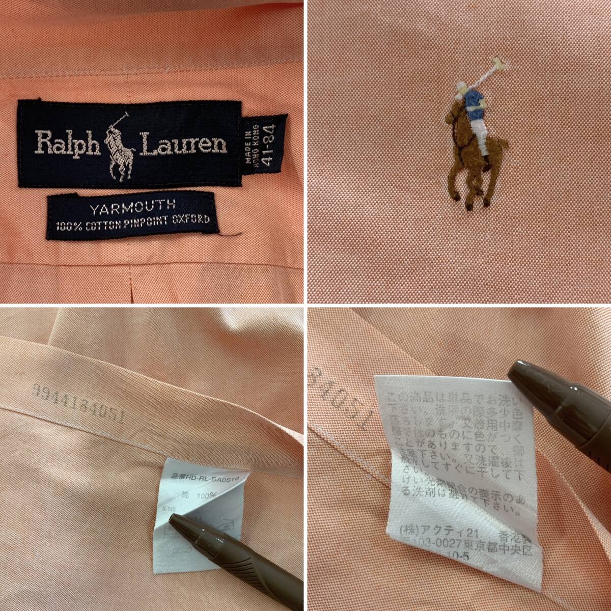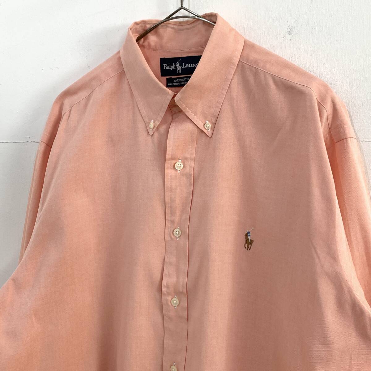 ☆Ralph Lauren ラルフローレン YARMOUTH 長袖 オックスフォードシャツ サーモンピンク系 サイズ41-84 綿100 古着【送料一律/同梱可能】Gの出品です。