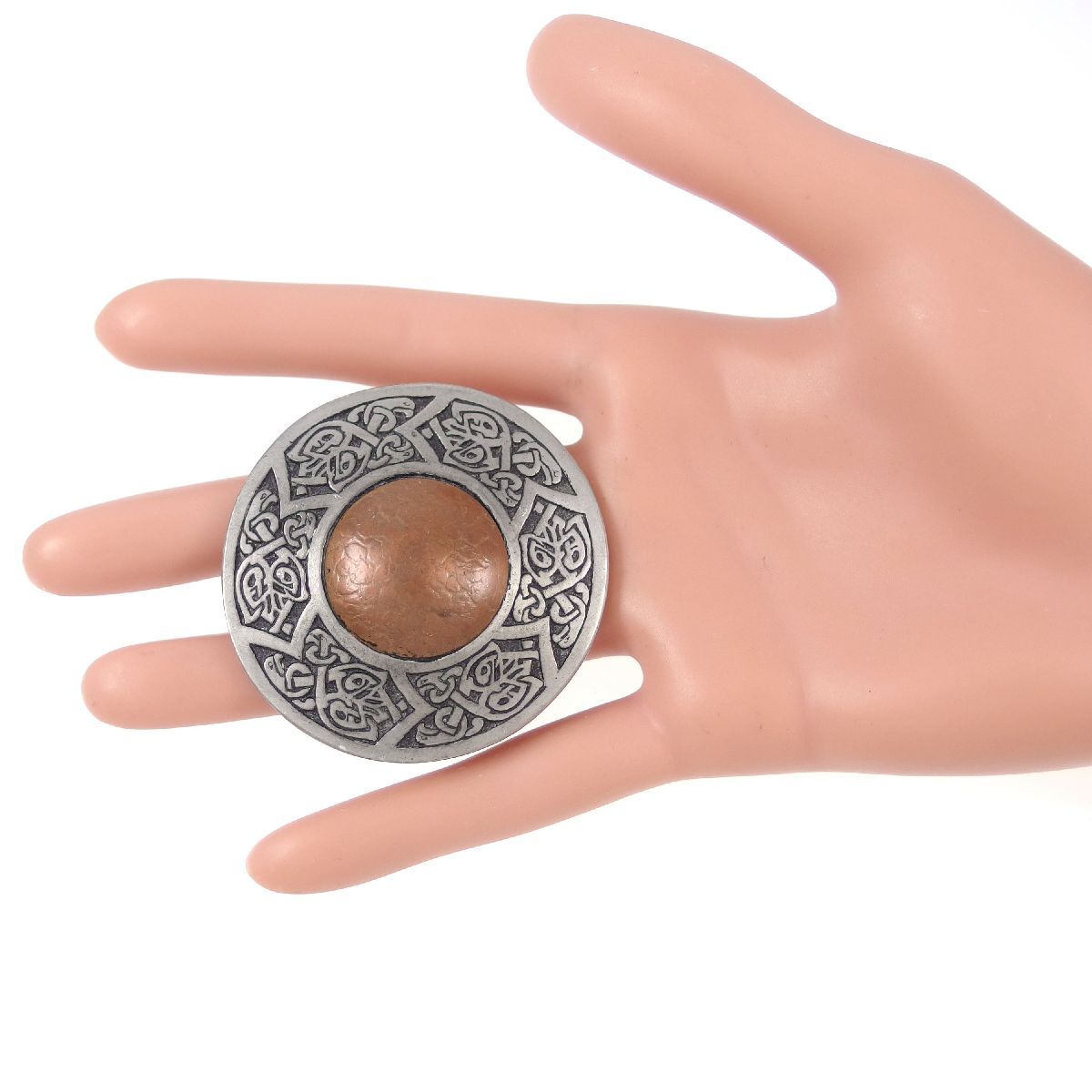 UK1695◆【ST.JUSTIN】◆ ラウンド ケルト模様 彫刻 バイキング 英国 イギリス ◆ ヴィンテージブローチ ◆