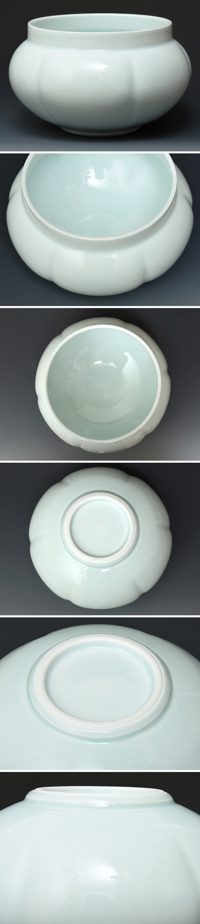 | 人間国宝 井上萬二(造)青白磁瓜形 壷 壺 平水指にも 径27㎝ |