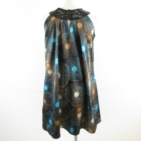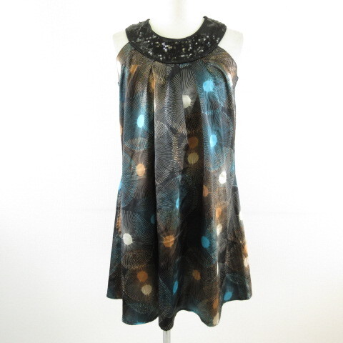 RINGSPUN チュニック ワンピース ミニ ノースリーブ 総柄 スパンコール 黒 1 *T73 レディース