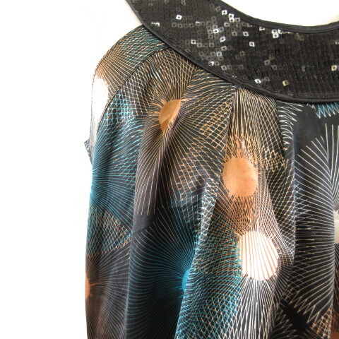 RINGSPUN チュニック ワンピース ミニ ノースリーブ 総柄 スパンコール 黒 1 *T73 レディース