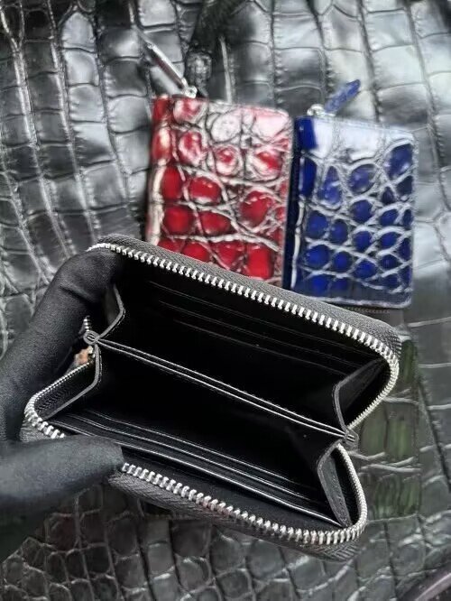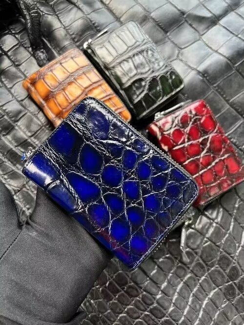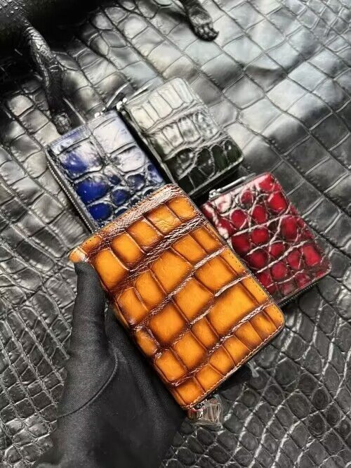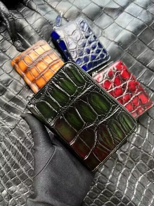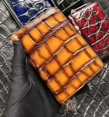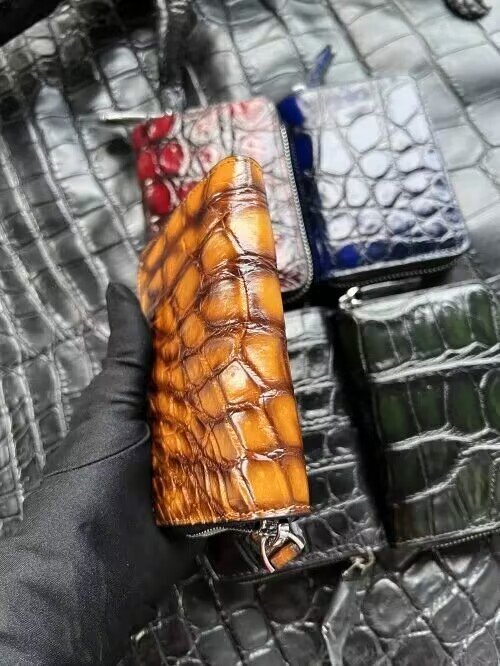 QB オレンジ色 小さい財布 腹革 人工養殖 アリゲーター◆手染 クロコ メンズウォレット 紳士用 本物 ワニ革 メンズ 鰐 財布 小銭入れあり