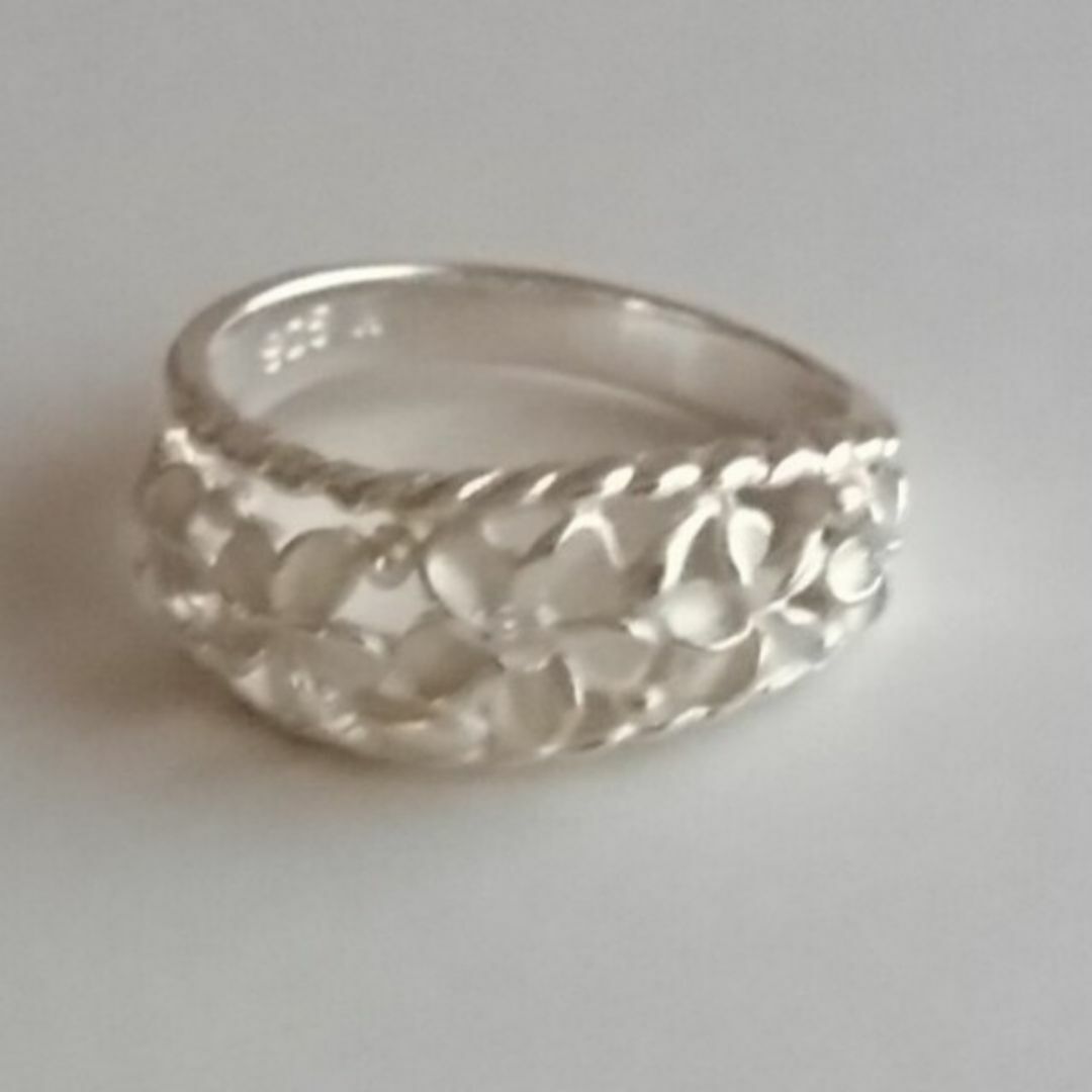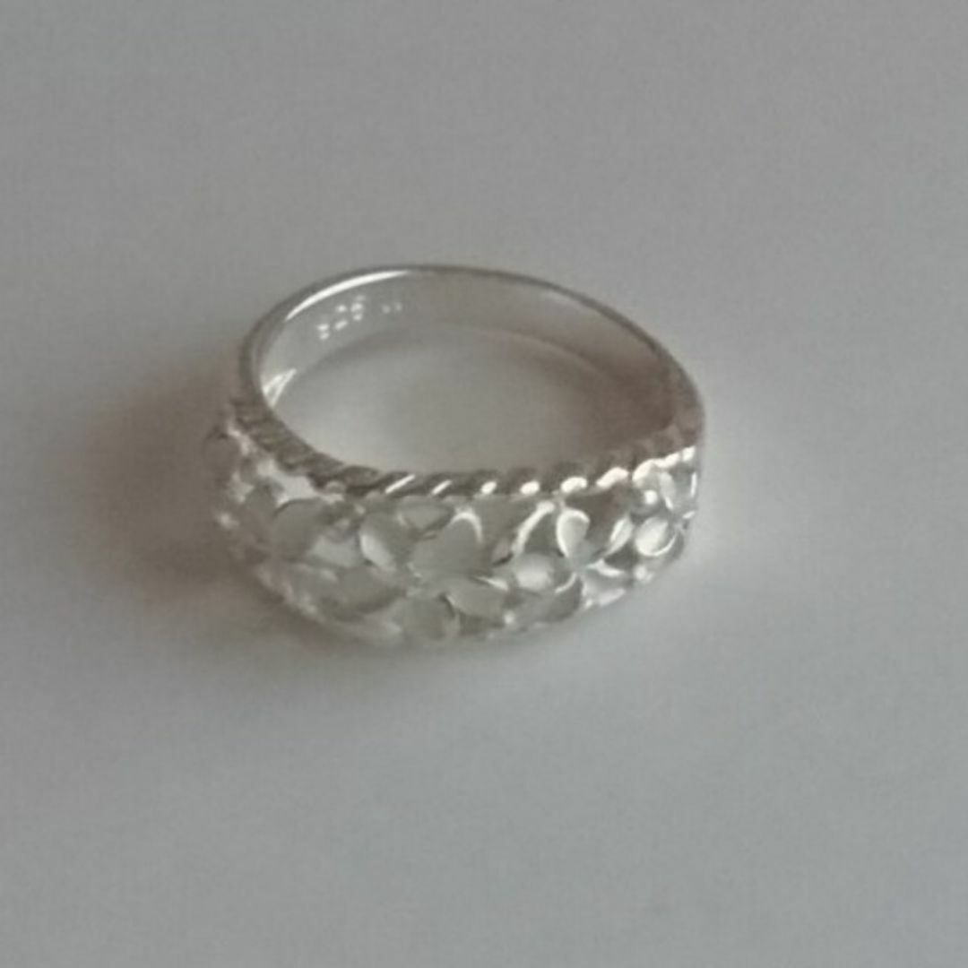 【US3.5】 約6号 ハワイアンリング プルメリア SILVER925 ハワイアンジュエリー スターリングシルバー 5連