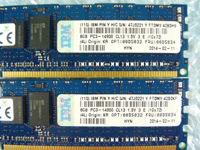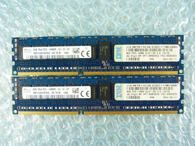 8GB 2枚セット 計16GB DDR3-1866 PC3-14900R Registered RDIMM 1Rx4 HMT41GR7AFR4C-RD 00D5034 47J0221 47J0221