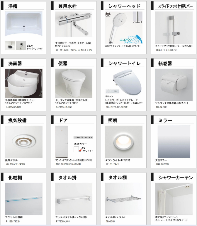 *メーカー施工はユニットバス本体組立のみです。撤去・配管・配線・大工工事は行いません。