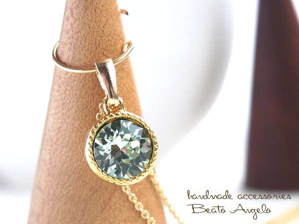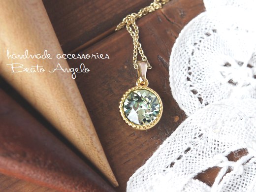 ◇◇+angelo+スワロフスキー 1088のネックレス(n-029)クリソライト G 一粒 シンプル ライトグリーン