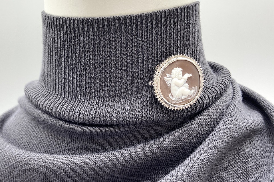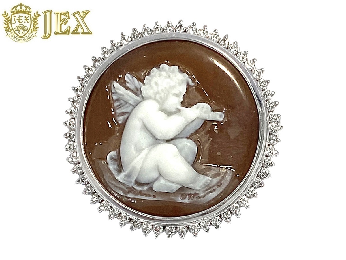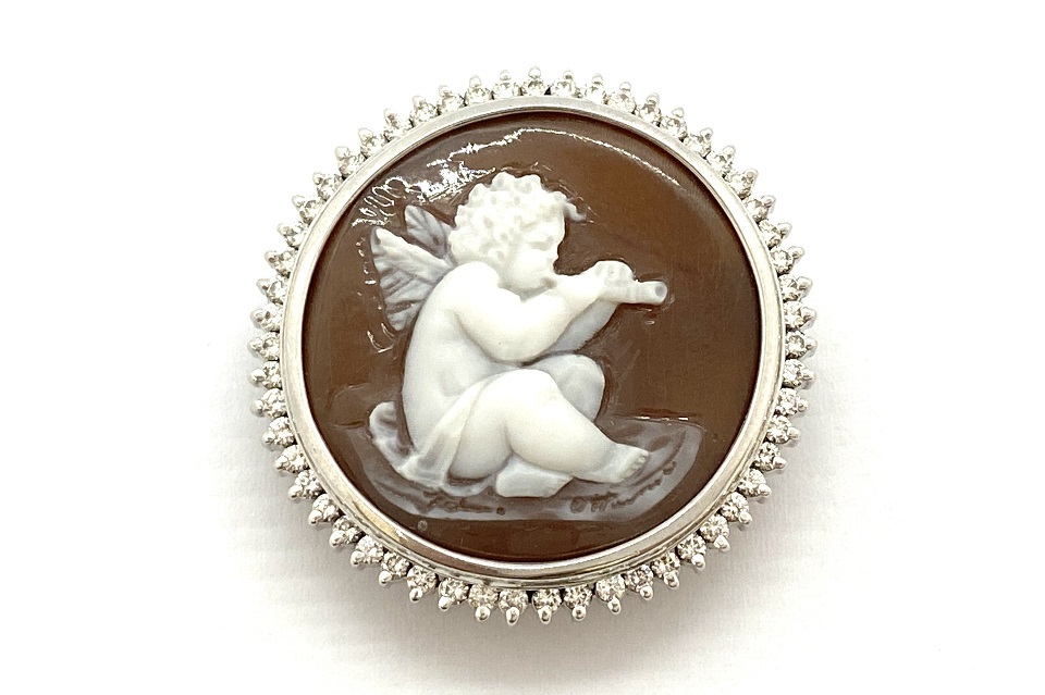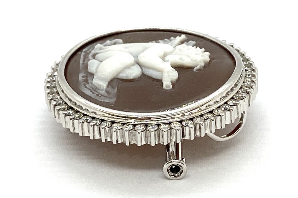 品名 | Ottaviano【オッタビアーノ】 K18WGシェルカメオ ダイヤモンドペントップ兼ブローチ |