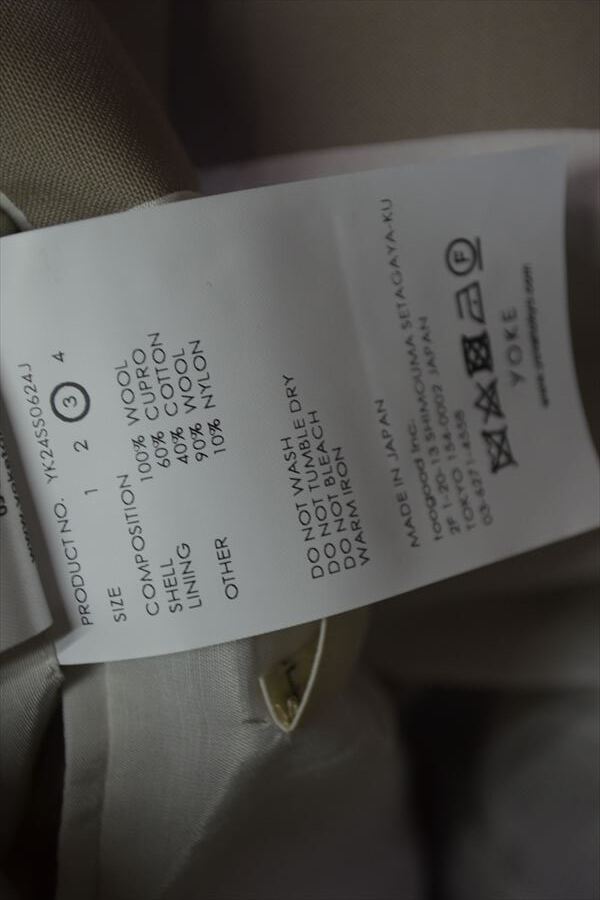 マテリアル | ウール/100% キュプラ/60%、綿/40% (別布)ウール/90%、ナイロン/10% |