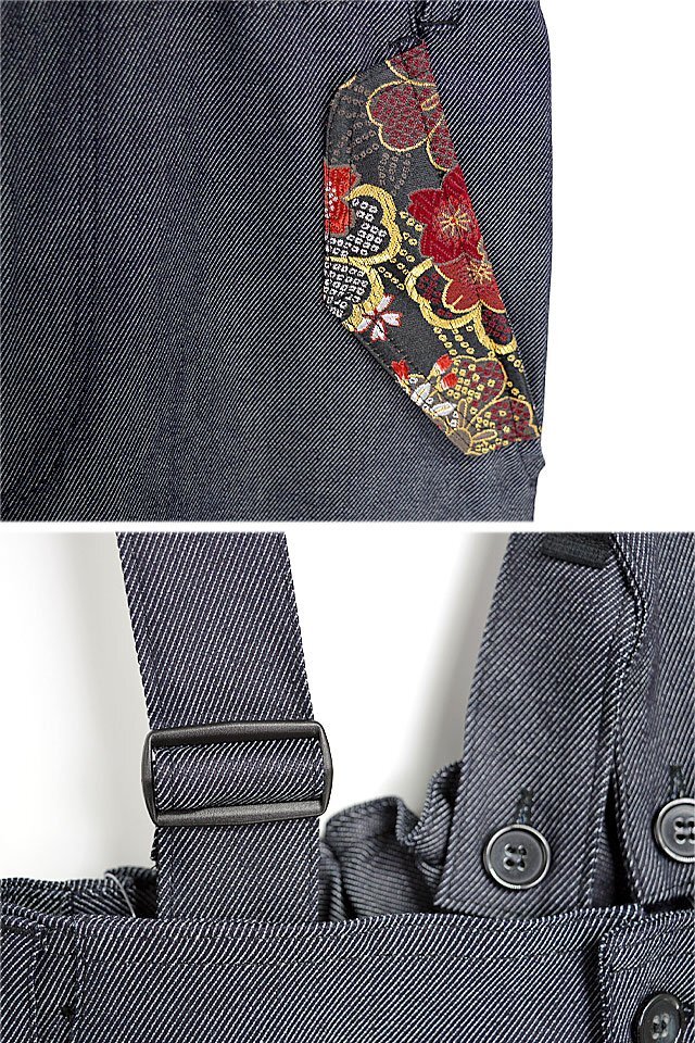 CHIGIRIさんから「サロペットパンツ(CHS58-1581)」のご紹介です。 CHIGIRIオリジナルのサロペットパンツが登場しました! フロント両側、バック右側のポケットにはそれぞれ和柄の生地を切り替えました。 紐の長さはベルトで調節可能。 和柄のサロペットパンツは非常に珍しいアイテムとなっています。 | ||||||||||||||||||||