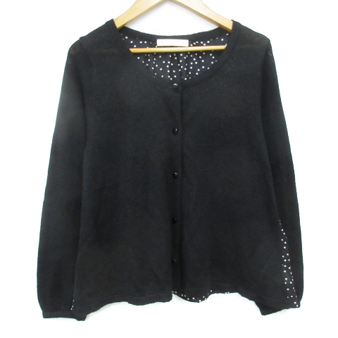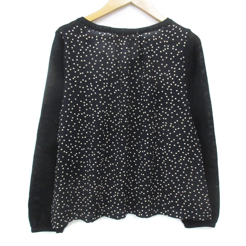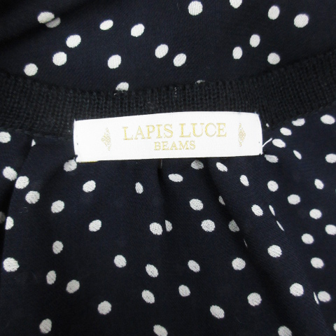 ラピスルーチェパービームス ニットカーディガン ミドル丈 切替 ドット柄 水玉柄 黒 アイボリー ブラック /FF7 レディース