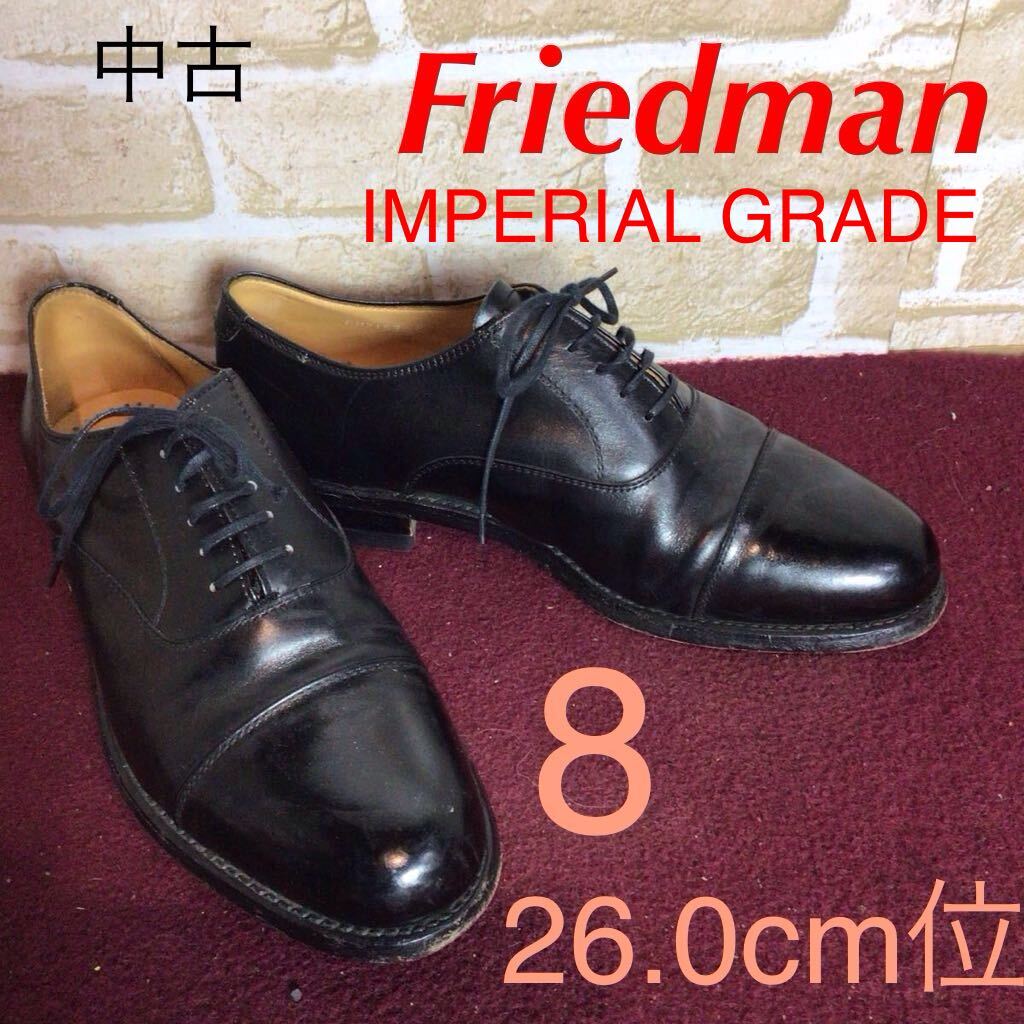 【売り切り!送料無料!】A-364 Friedman IMPERIAL GRADE! ビジネスシューズ!黒!ブラック!8 26.0cm!仕事!冠婚葬祭!ストレートチップ!中古!