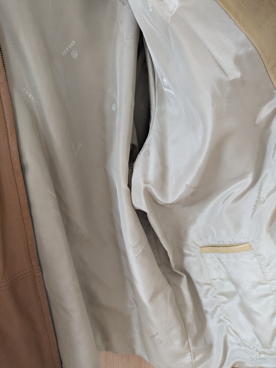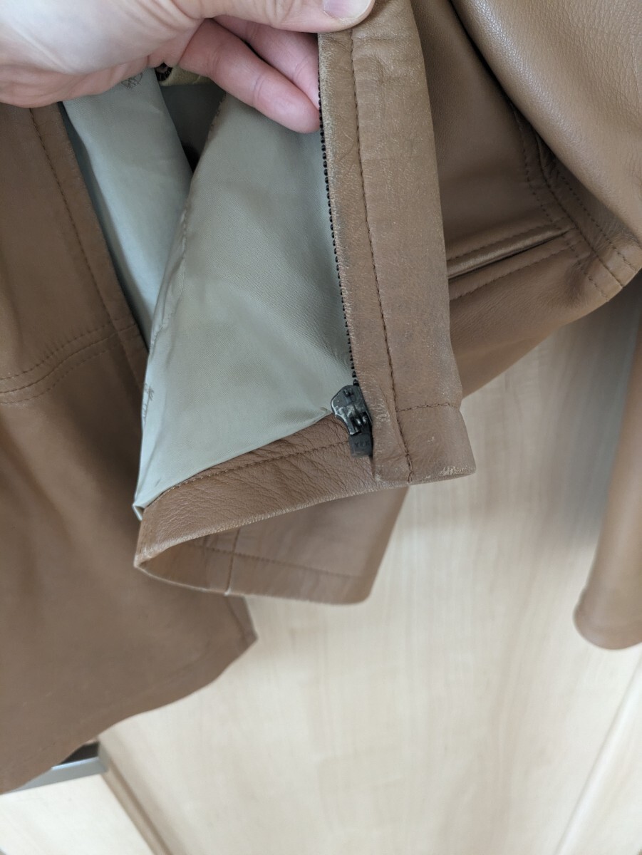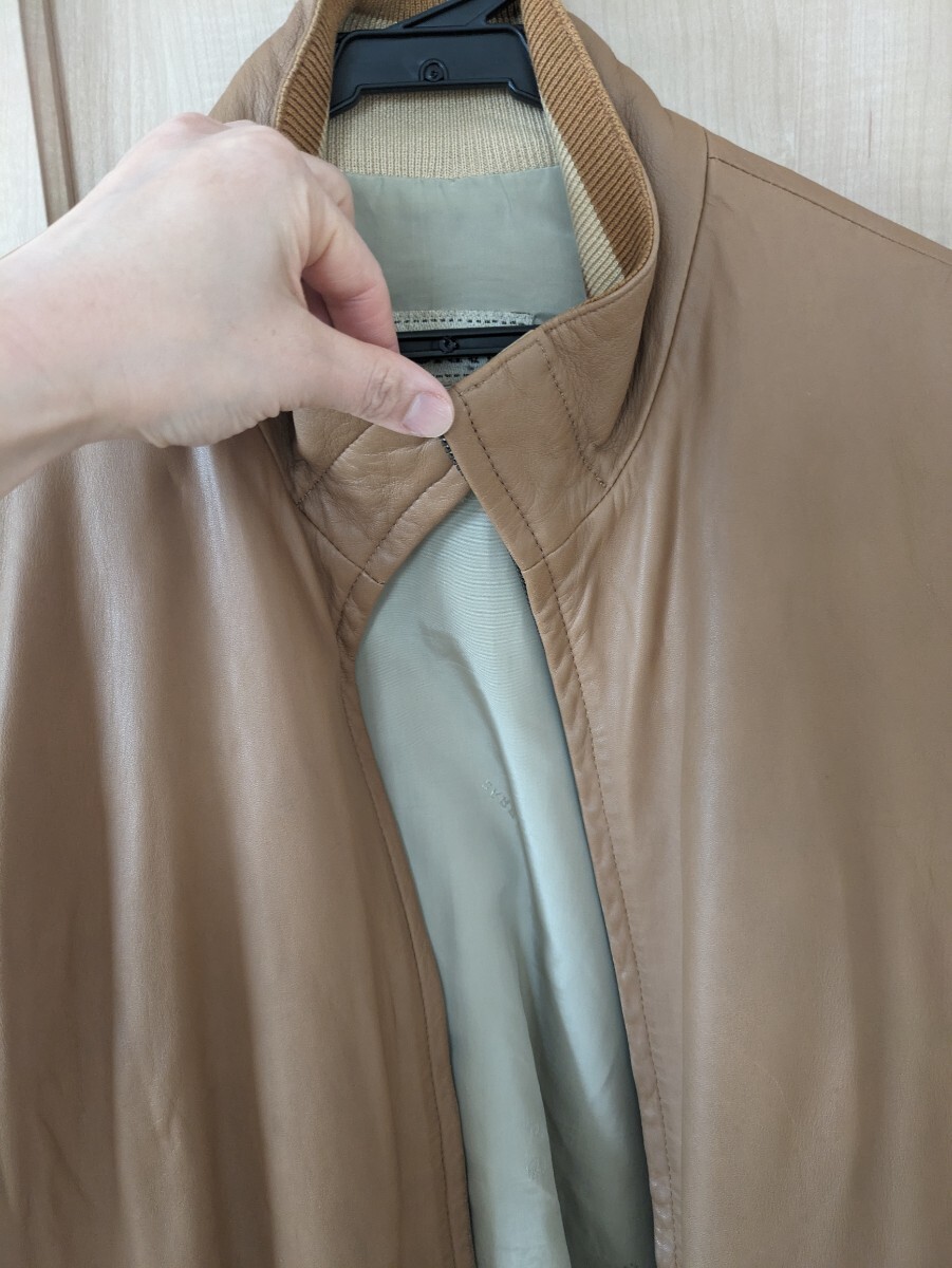 ワンシーズン数回着用して、クローゼット保管していました。やわらかい革で着心地良いです。
