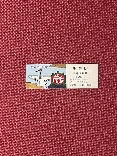 千歳駅 勤労の日記念 硬券 (管理番号25-7)