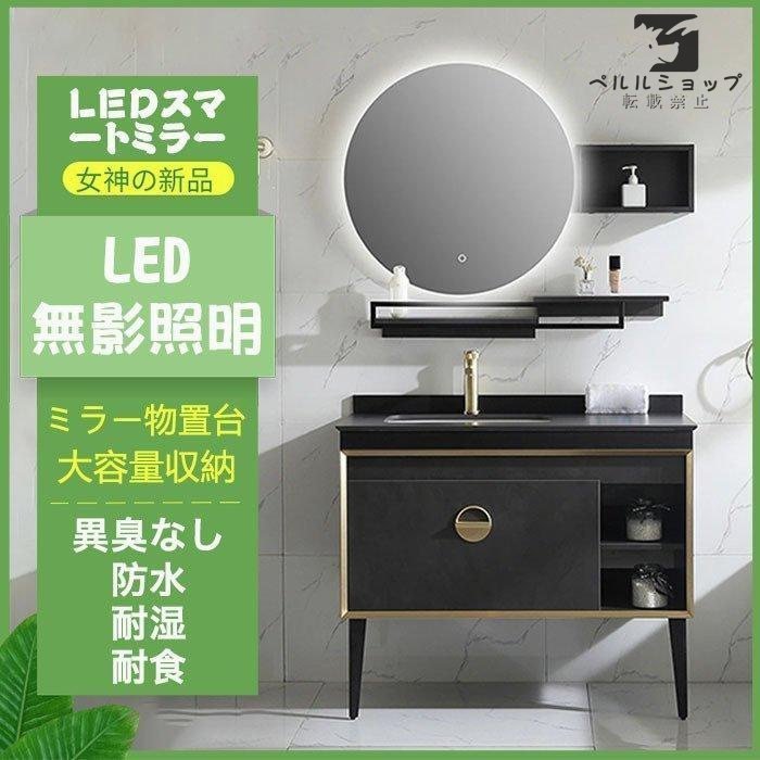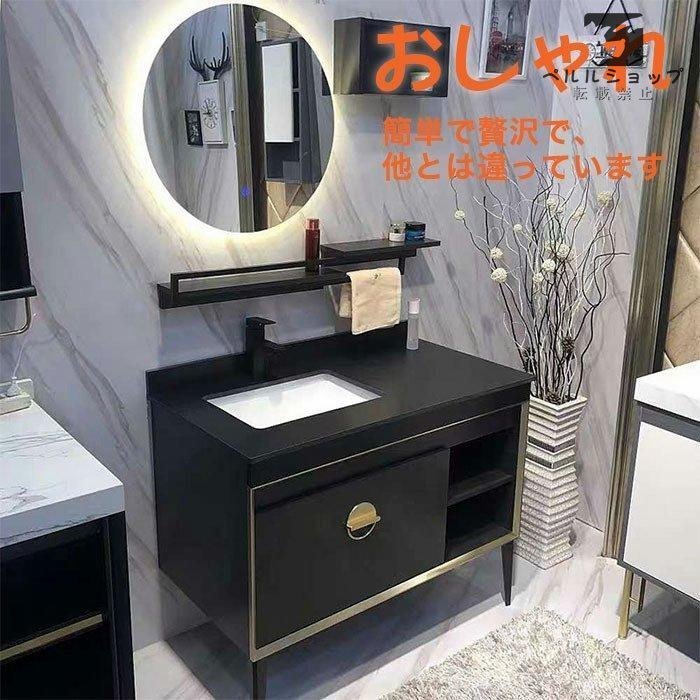 洗面台 洗面化粧台 80cm洗面セット 洗面台 ミラー 天然大理石 調光 調色ゃれ 鏡 収納 曇り止め機能 LEDアンティーク