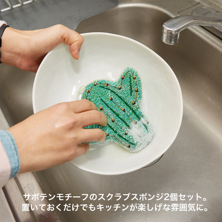 置いておくだけでもキッチンが楽しげな雰囲気になる、サボテンモチーフのかわいいキッチンスポンジ。