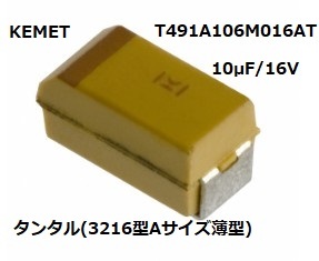 KEMET(NECトーキン) タンタル(3216型Aサイズ薄型) 10μF/16V T491A106M016AT 100個 テープカット-「BOX17]1950個