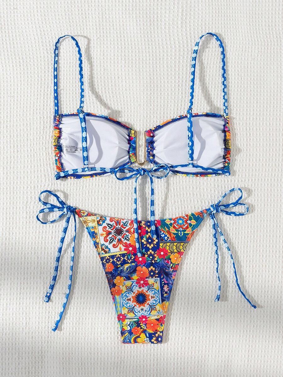 レディース 水着 ビキニセット 女性用おしゃれなバケーションスタイルのサマープリントビキニ水着セット