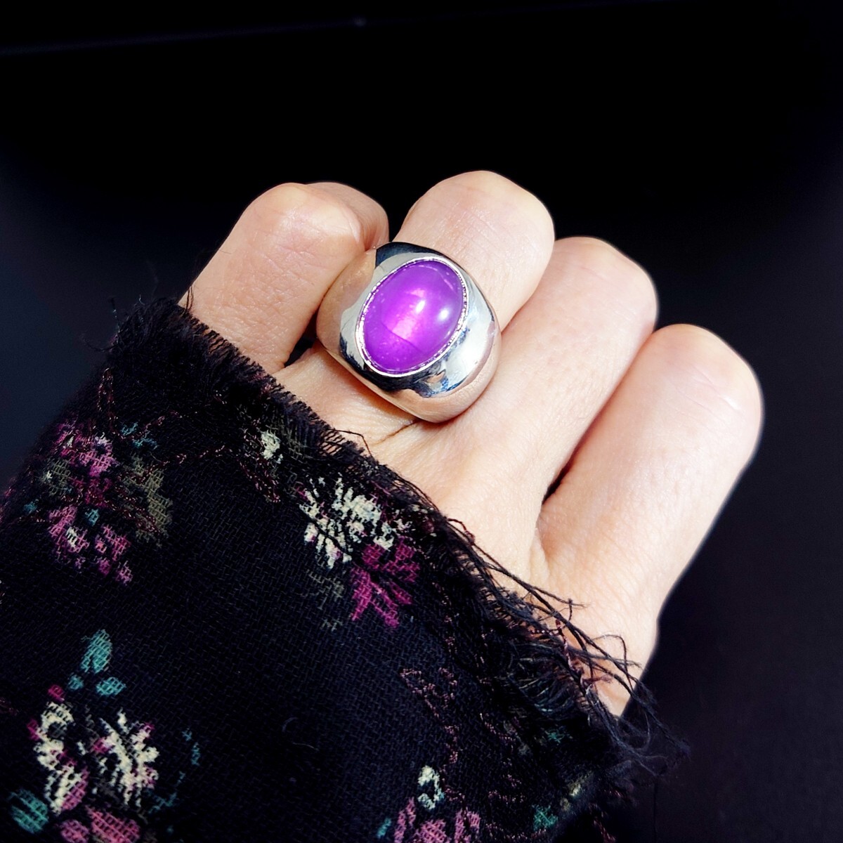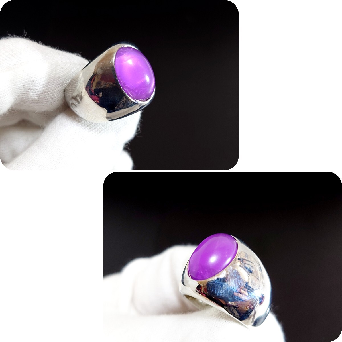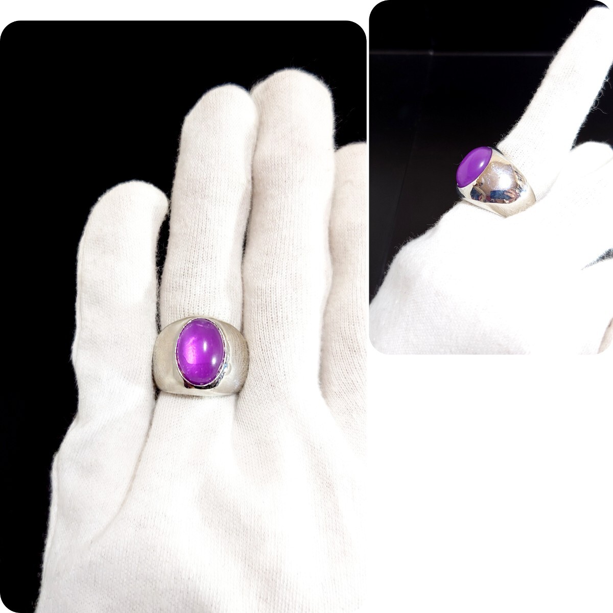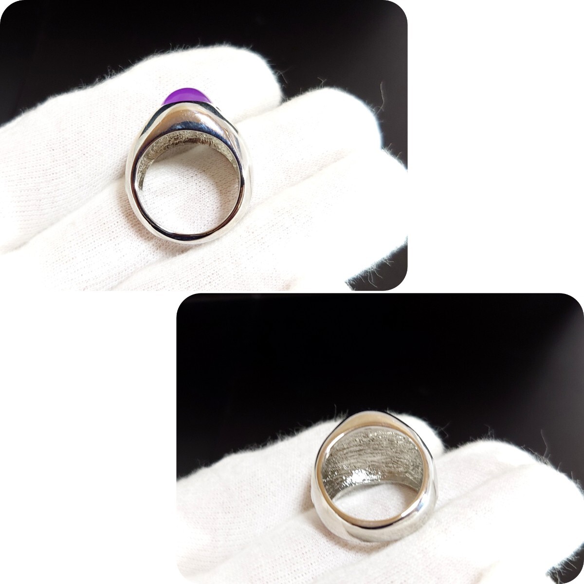 925メッキを薄〜〜〜く伸ばして加工している為、リング自体にシルバーのリアルチックな光沢感があるのが特徴です。