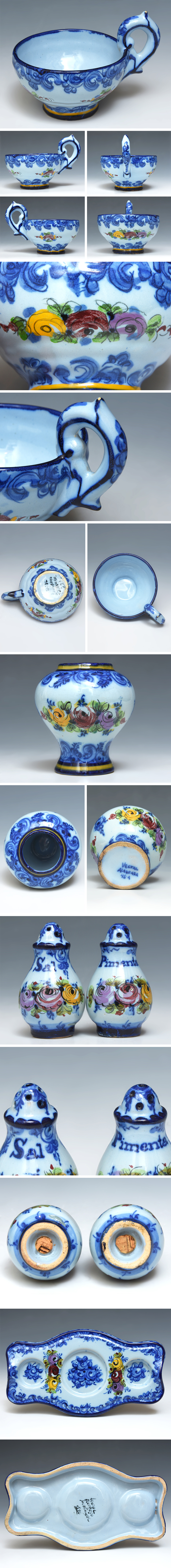 ポルトガル製 vestal alcobaca portugal (造) スープカップ 6客 調味料入れ 台座 セット スパイス入れ 手描き ハンドペイント |