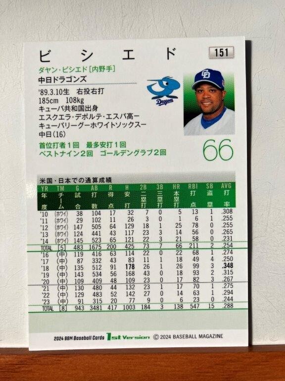 【2024 BBM 1st】151ビシエド(中日ドラゴンズ)レギュラーカード