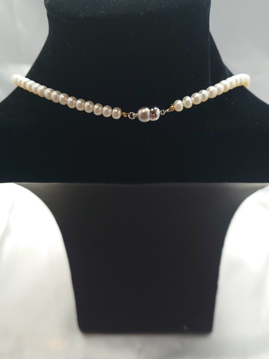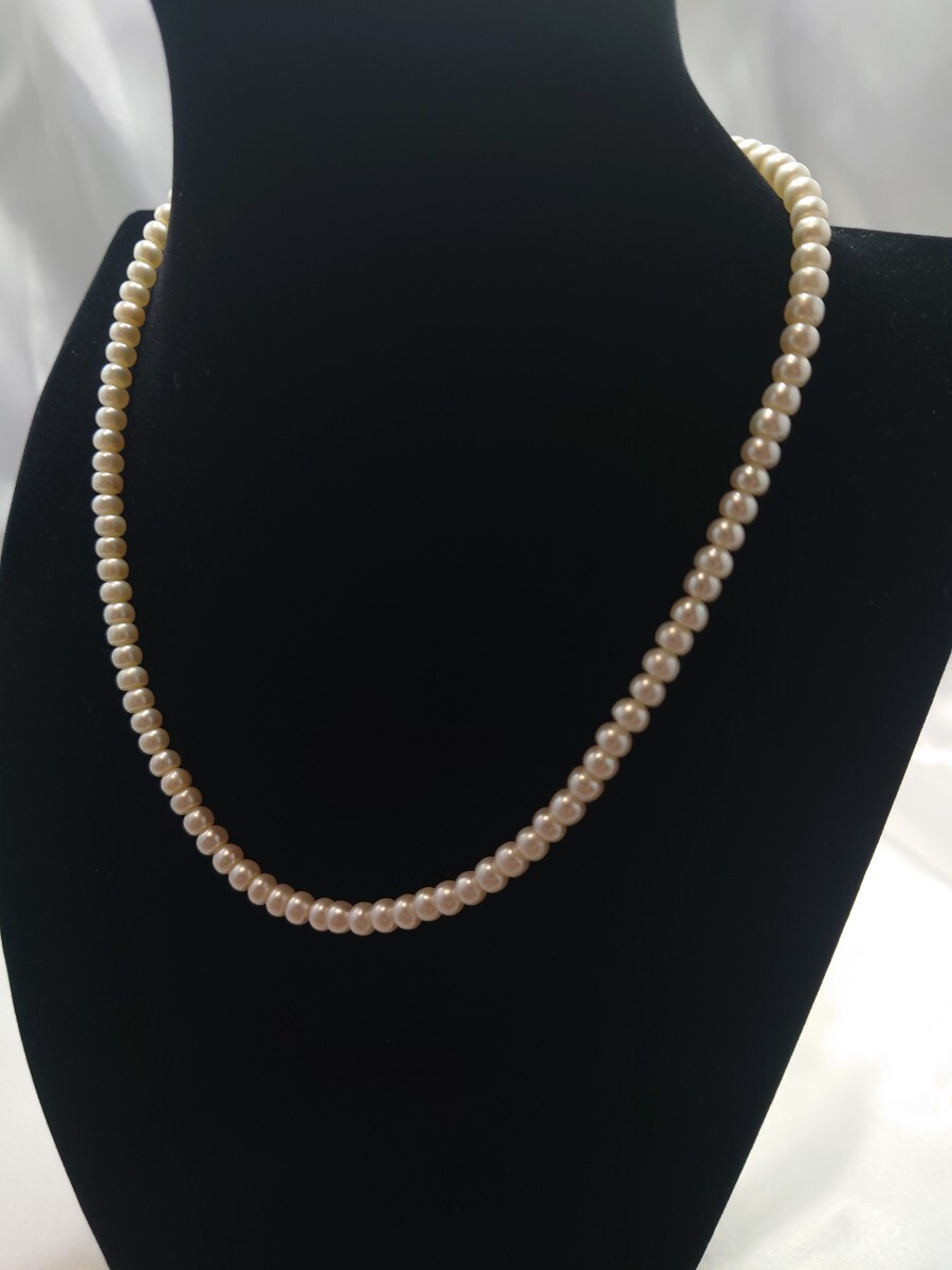 こちらは真珠を使用した当方、オリジナルデザインの手作りのネックレスとなっております。