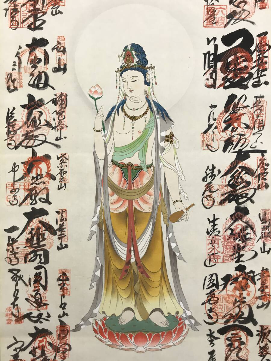 西国三十三ヶ所/西国三十三箇所霊場集印肉筆掛軸/掛軸☆宝船☆AF-658