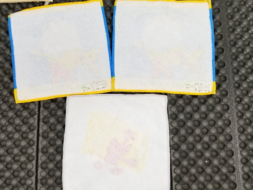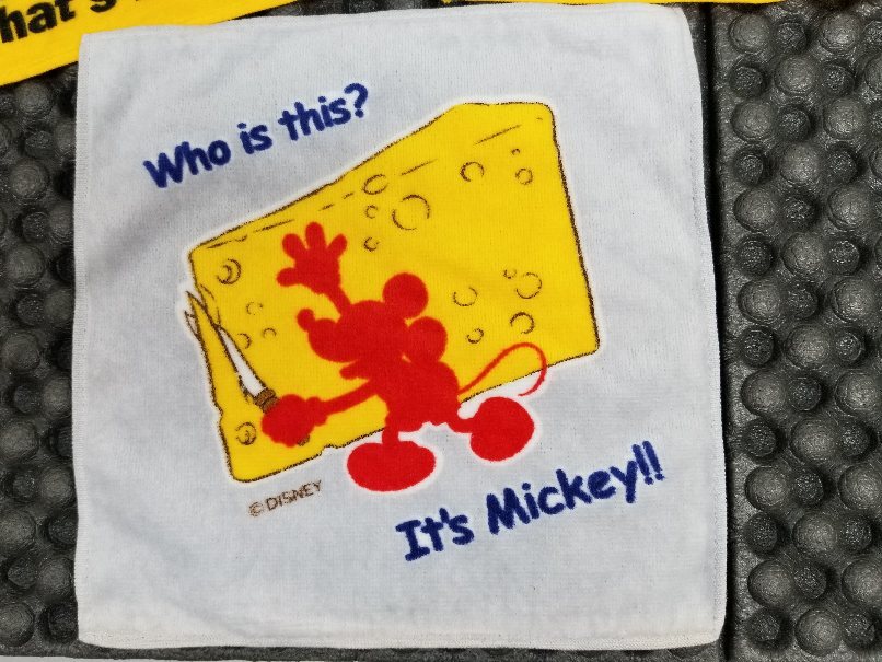 ミッキーのハンカチは経年のためシールががれています。