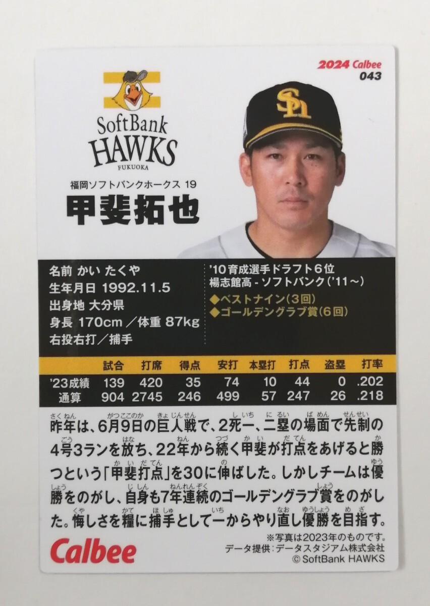 ★043 福岡ソフトバンクホークス 甲斐拓也★