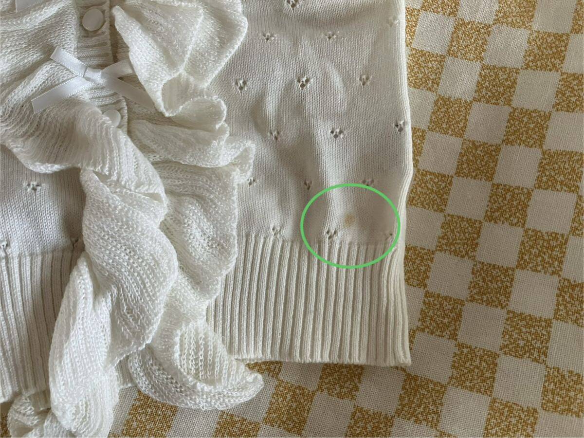 ※左前裾に直径5mm程度のシミがあります。(写真4)