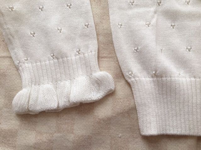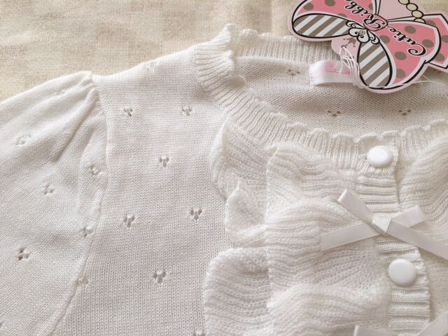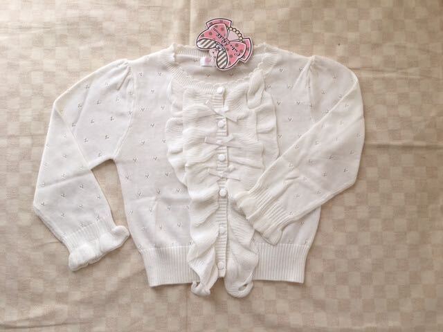05-A624★送料無料♪新品タグ付やや難あり!フリル仕立てコットンカーディガン・白100・ホワイト・透かし編み