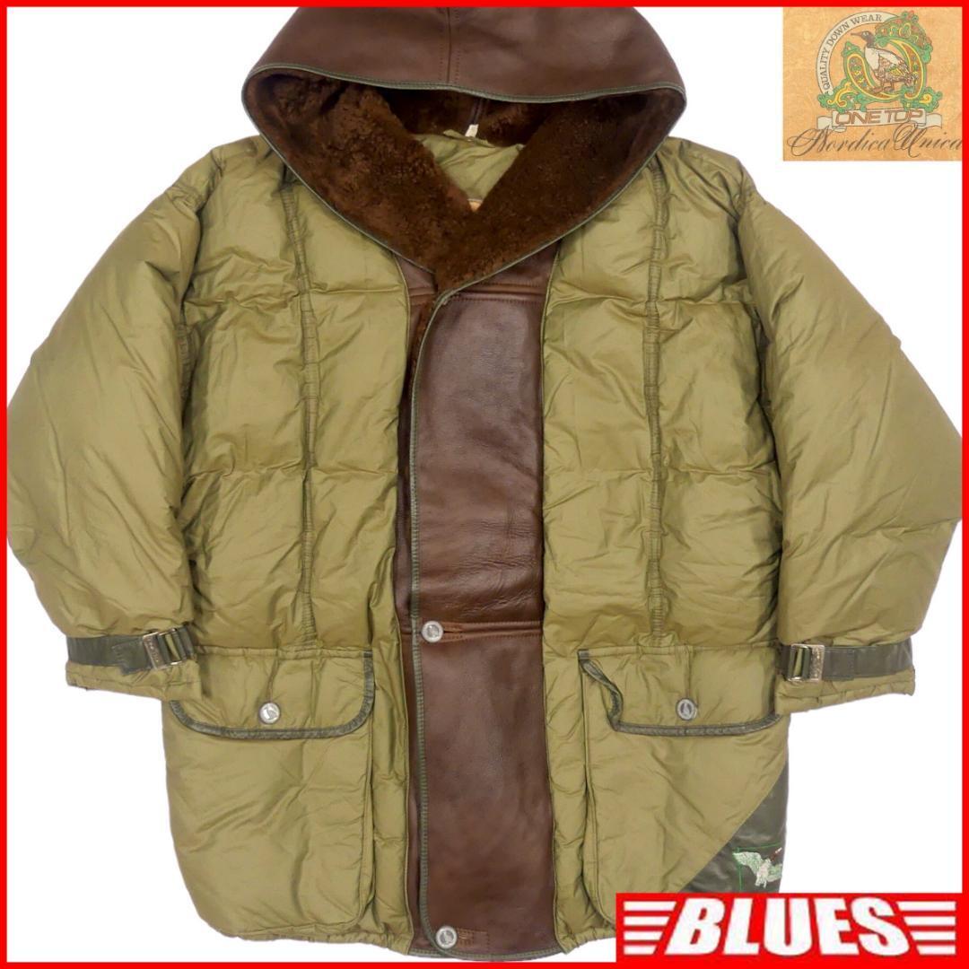 即決★フィンランド製 ONE TOP★メンズS ダウンジャケット ワントップ レザーコンビ カーゴ 牛革 アウトドア ダウンコート 登山 キャンプ