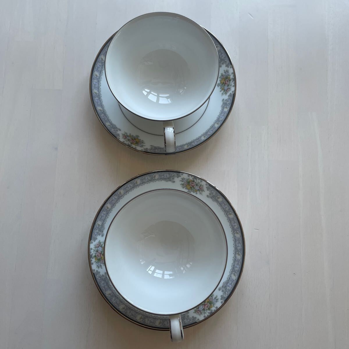 ノリタケの上品なデザインのペアカップ&ソーサーです。画像が全てです。きちんとご自身でご確認下さい。NC.NRです。今回コレクション整理の為出品いたします。食器棚に飾っておりましたので高台に汚れあるかもしれません。きちんと洗ったらとれるかもしれませんが現状渡しとさせて頂きます。使用頻度の少ない美品ですが自宅保管品です。神経質な方は入札をお控え下さい。