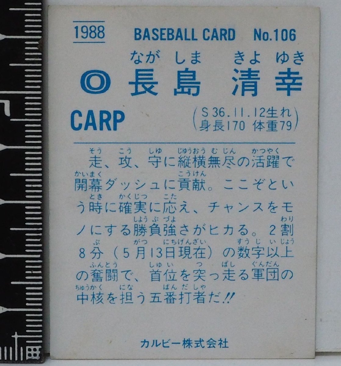 88年 カルビー プロ野球カード No.106【長島 清幸 広島東洋カープ】昭和63年 1988年 当時物 Calbeeおまけ食玩BASEBALL【中古】送料込