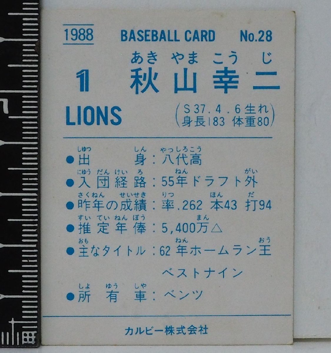 88年 カルビー プロ野球カード No.28【秋山 幸二 西武ライオンズ】昭和63年 1988年 当時物 Calbee おまけ 食玩 BASEBALL【中古】送料込
