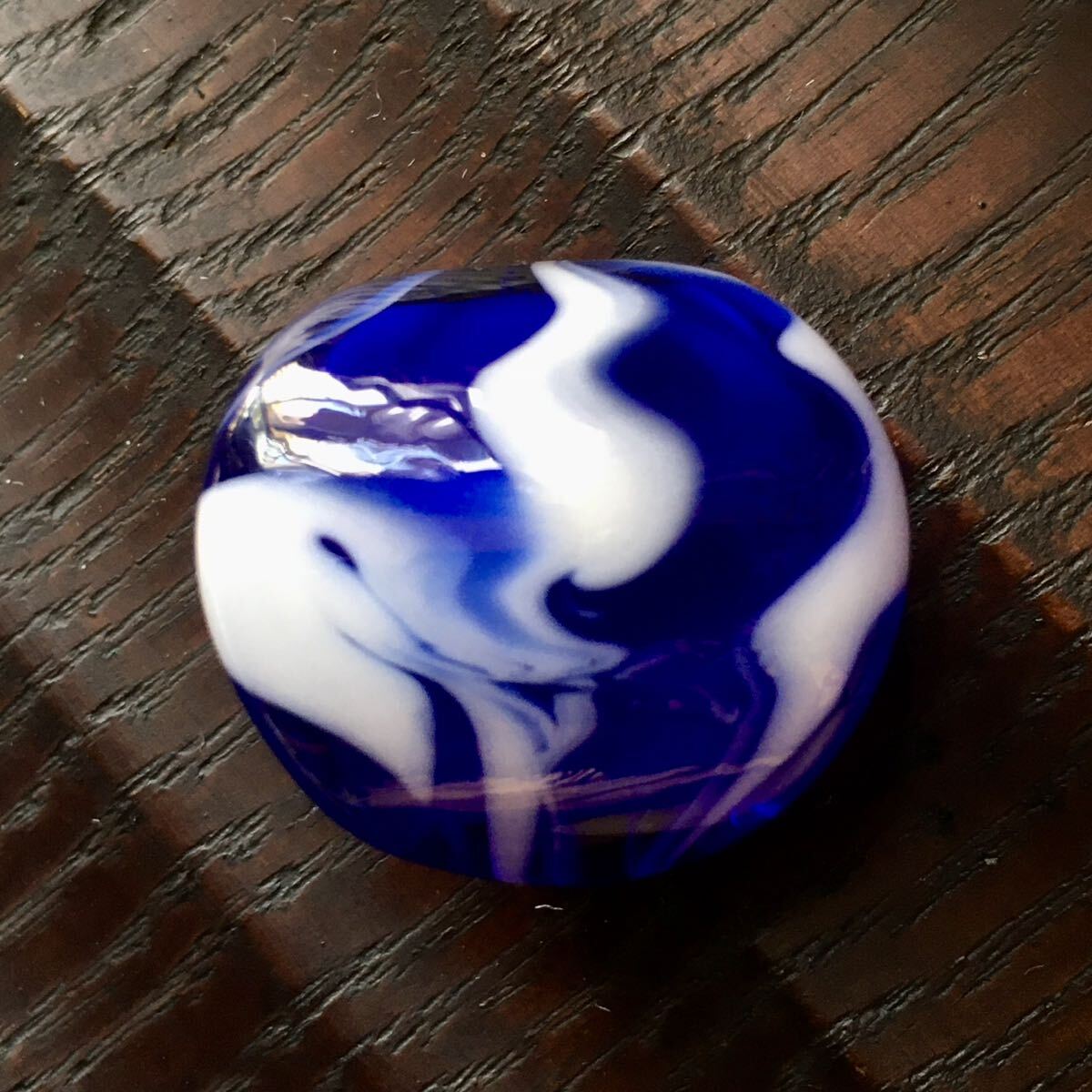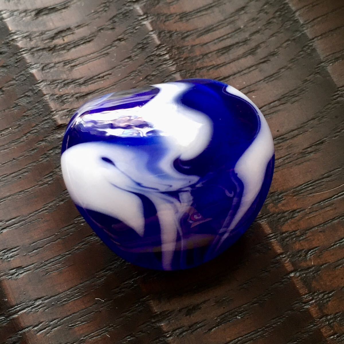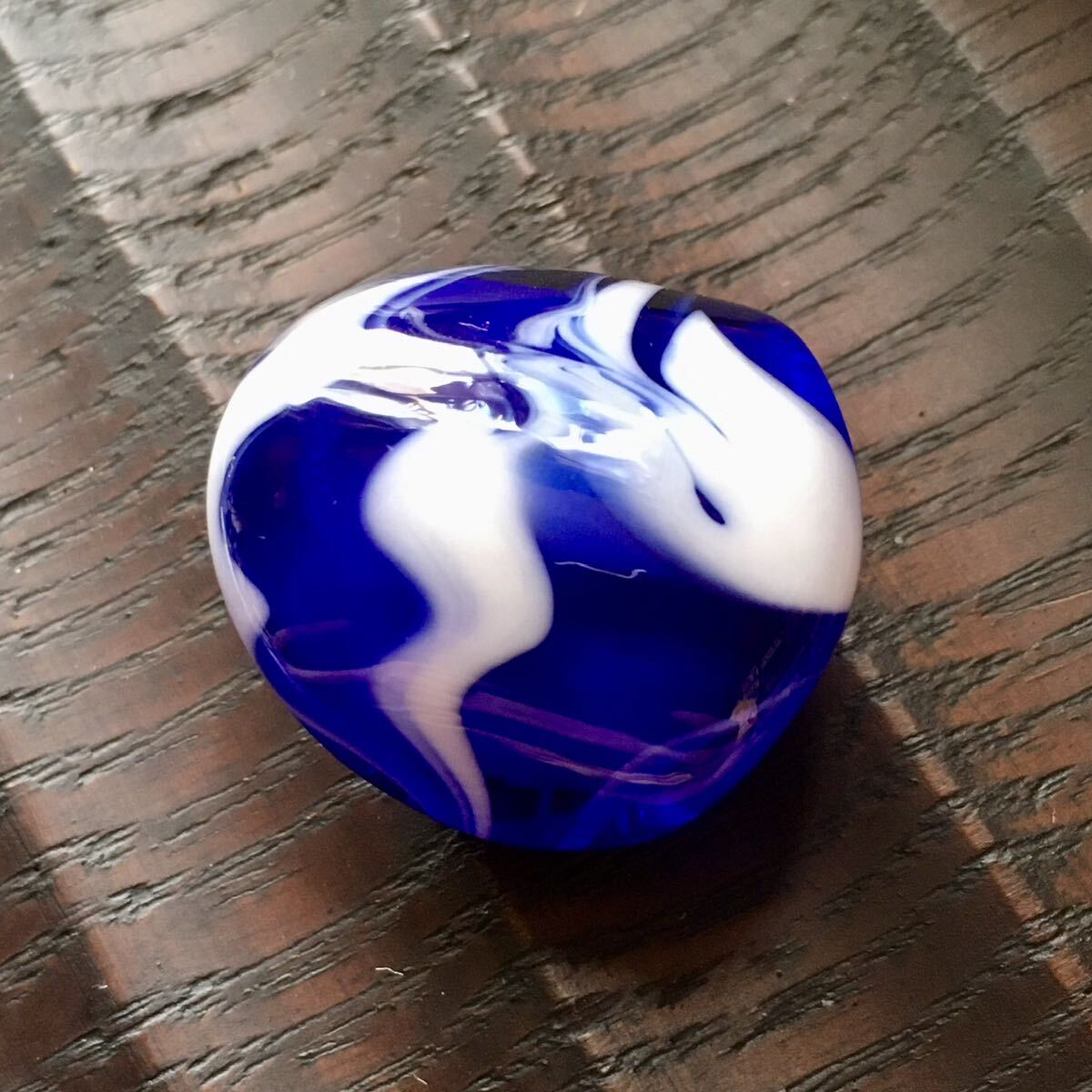 青いガラスと白いガラスをマーブル状に合わせてみました。