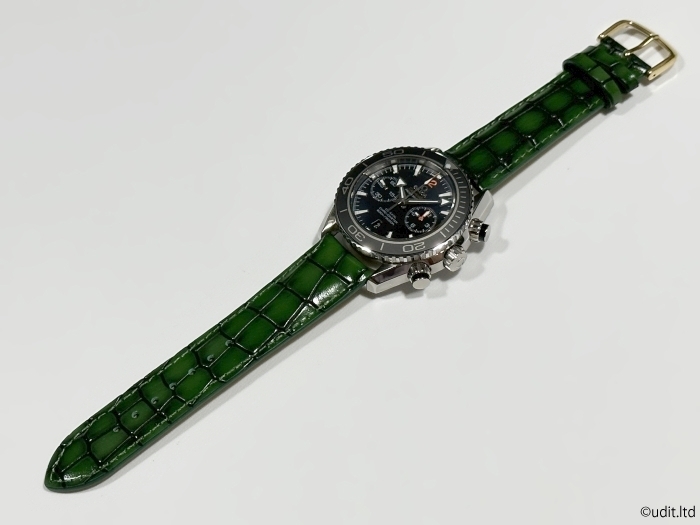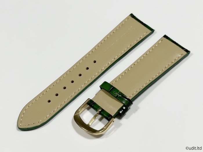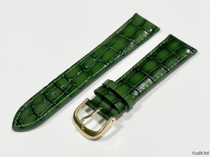 ラグ幅 22mm 腕時計ベルト レザーベルト バンド グリーン 尾錠ゴールド クロコダイル調 ハンドメイド 尾錠付き レザーバンド LB102