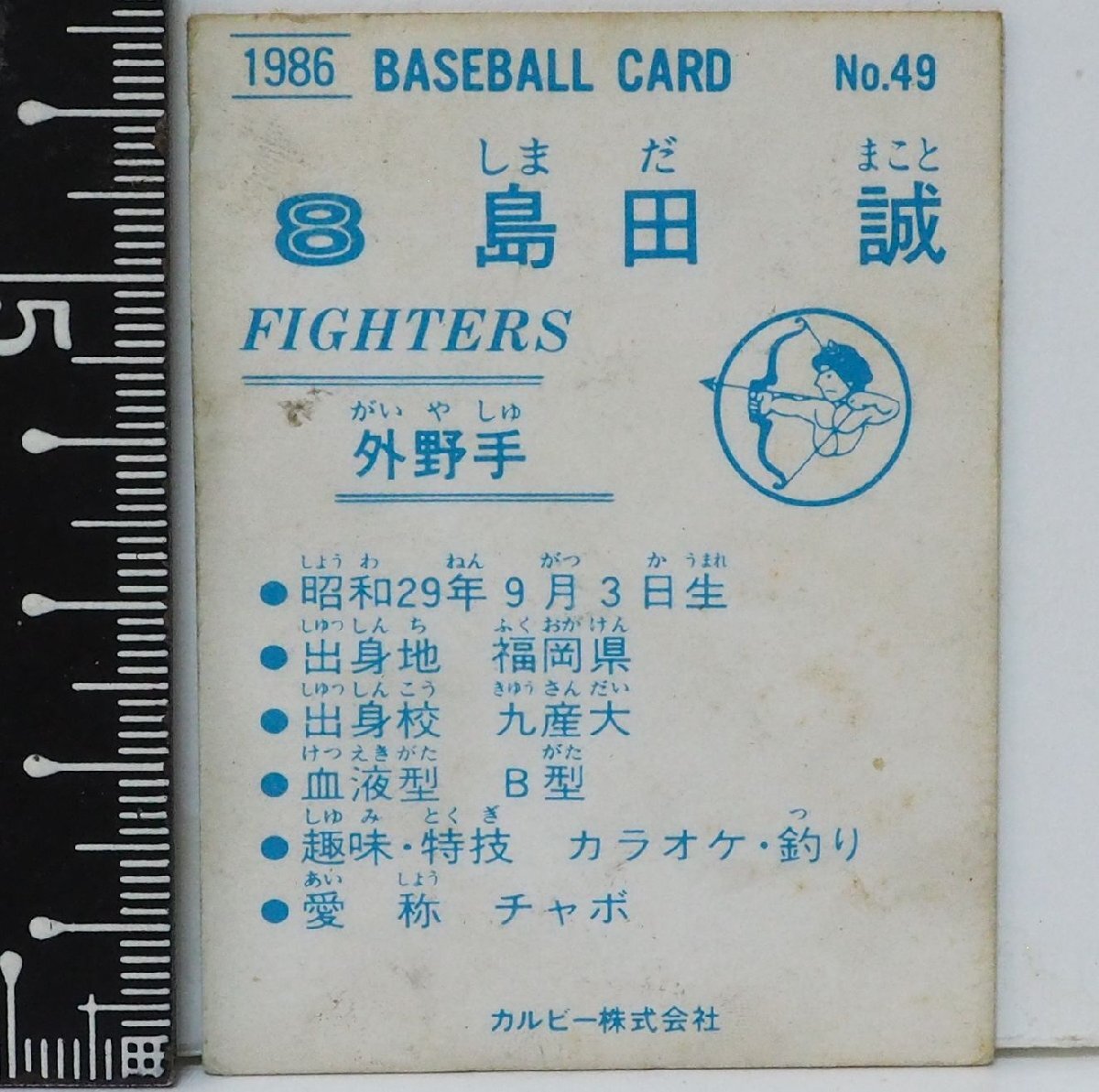 86年 カルビー プロ野球カード No.49【島田 誠 外野手 日本ハム ファイターズ】昭和61年 1986年 当時物 Calbee おまけ食玩BASEBALL【中古】