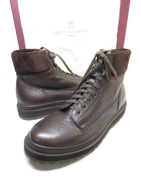 定価108.900円 未使用【OFFICINA SLOWEAR スローウエア】 130187 SW441 620 レースアップブーツ シボ革 靴 (メンズ) 40 濃茶 ■30SLZ177■