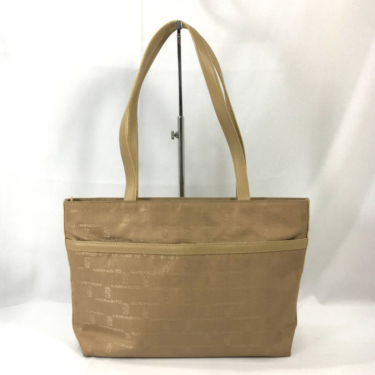 モラビト セミショルダーバッグ ジャガード×カーフレザー ベージュ ロゴ 総柄 肩掛け トートバッグ イタリア製 MORABITO |