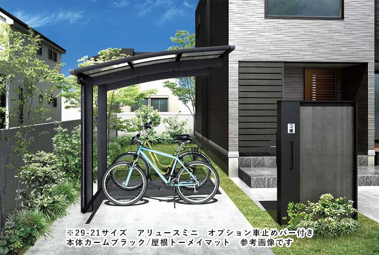 YKKAP社製の『アリュースミニ』サイクルポートシリーズ(Y合掌)は、スリムで柔らかなアールデザインが住宅と優しく調和します。