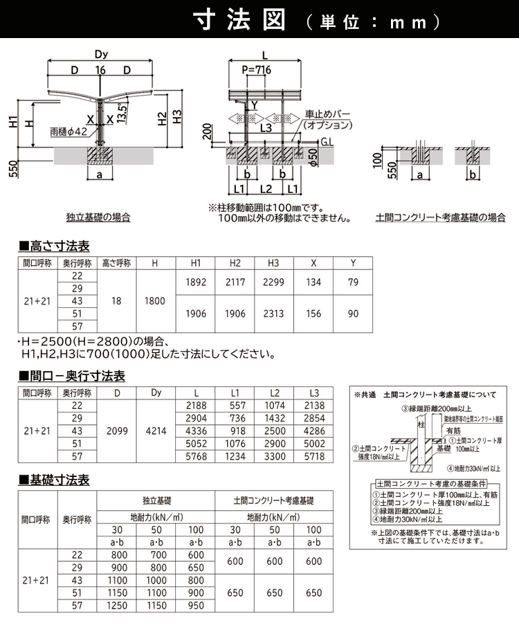 柱高さ:ハイルーフ(H25)2,500mm